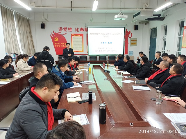 2019年12月21-22日,“2019年河南省蛋鸭和种鸭首届疫病防控高级研修班”在我校顺利举行。此次活动由我院科研平台“河南省中兽药经典名方传承与创新”工程技术研究中心主办,河南水禽产业技术联盟、河南旭瑞食品集团、新希望六和集团承办。出席开幕式的有山东农业大学国家水禽体系岗位专家刁有祥教授、浙江农科院李国勤教授、新希望六和种禽部经理秦立安、我院党委书记刘永录、院长宋予震、副院长吴玉臣等领导。参加研修班的人员主要有省内蛋鸭和种鸭行业一线的技术、管理人员,动物医药学院全体教师、动物科技学院的部分教师和学生共70余人参加了此次活动。开班典礼仪式由我院副院长吴玉臣主持。山东农业大学国家水禽体系岗位专家刁有祥教授、浙江农科院李国勤教授等8名专家在两天的时间里为研修班的学员们献上了精彩纷呈的讲座。研修班专家授课内容主要包括蛋鸭、种鸭发展现状、饲养管理要点、主要疫病的防控、食品安全与抗生素合理使用、蛋鸭生物安全体系建立、蛋鸭种鸭疫病检测报告解读、蛋鸭种鸭常见实验室检测流程与监测体系的建立、中兽药对蛋鸭种鸭常见病的防控等方面。