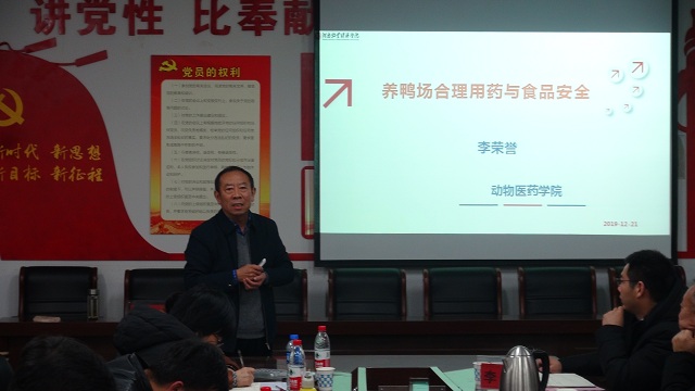 李荣誉教授以“养鸭场合理用药与食品安全”为主题讲授了兽药管理政策解读与食品安全、养鸭场合理用药基本知识解析、影响用药疗效的主要因素解析、抗生素替代品的应用简介等内容,对临床都有很好的借鉴意义。