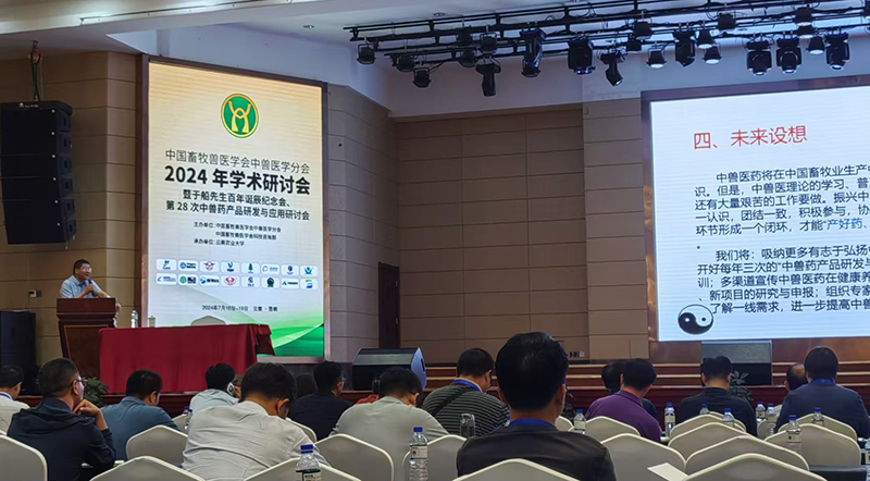 2024年7月16至19日,中国畜牧兽医学会中兽医学分会2024年学术研讨会暨于船先生百年诞辰纪念会、第28次中兽药产品研发与应用研讨会在云南昆明石林县召开,会议由中国畜牧兽医学会中兽医学分会、中国畜牧兽医学会科技咨询部主办,云南农业大学承办。我院中兽医教研室教师和中兽药科研团队教师王长林、王炼、侯春彬、王雪飞、杨昆、胡佩佩等以及中兽医退休教师汪德刚应邀参加此次会议。会议内容包括纪念中兽医理论家、现代中兽医学奠基人、中国农业大学教授于船先生百年诞辰,中兽医药学现代交流,中兽医教学与临床诊疗技术交流以及中兽药产品与应用研讨。