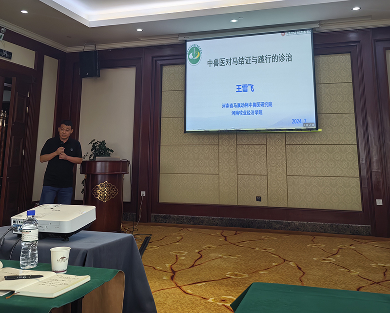 会议期间,汪德刚教授做了“建平台架桥梁,融合产学研用,振兴中兽医药——中兽药产品研发与应用平台十年工作回顾”报告,王长林副教授做了“猫面瘫的针灸治疗”专题报告,王雪飞博士做了“中兽医对马结证与肢蹄疾病的诊治”报告。此外,王雪飞荣获学会2024年“冀中杯”中兽医学优秀中青年教师荣誉称号。