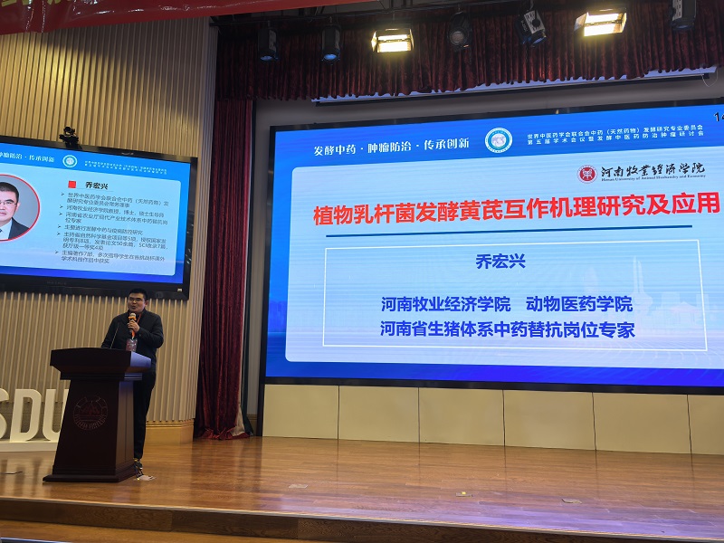 来自世界中联总会、世界中联中药发酵研究专委会、中国军事科学院军事医学研究院、河南中医药大学及我校等数百位来自产业界、学术界的领导、专家以及各地的中医从业者们汇聚一堂,共同探讨中医药传承创新,产业化发展及发酵中药肿瘤防治的新进展与新应用。我院乔宏兴教授应邀作了《植物乳杆菌固体发酵黄芪互作机理研究及应用》主题报告,介绍了团队近十余年发酵中药的研究、教学和应用情况,受到与会者的充分关注。会议期间,与军事医学科学院、山东中医药大学、大连医科大学等老师进行了深入的交流。