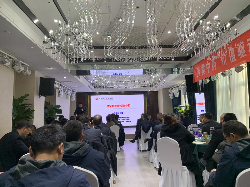 聘任仪式后,乔宏兴教授为企业了进行《说文解字谈发酵中药》的讲座,从历史溯源、文化内核与科学逻辑多维度揭示了发酵中药的传统价值和现代意义,为动物健康管理及替抗技术发展提供了创新思路。发酵中药技术根植于中华传统医学智慧,其历史可追溯至汉代《黄帝内经》中“醪醴”的记载。他通过解构“酵”“病”“菌”“医”等汉字的文化意涵,阐释了古人“阴阳调和”的发酵哲学,并结合现代微生物学技术,系统解析了发酵工艺对中药活性成分的增效机制。乔教授介绍,生物发酵过程通过菌酶协同作用,可使大分子物质转化为更易吸收的小分子成分,同时生成新的代谢产物等有益代谢产物,形成“药效提升+肠道微生态调节”的双重保健逻辑。