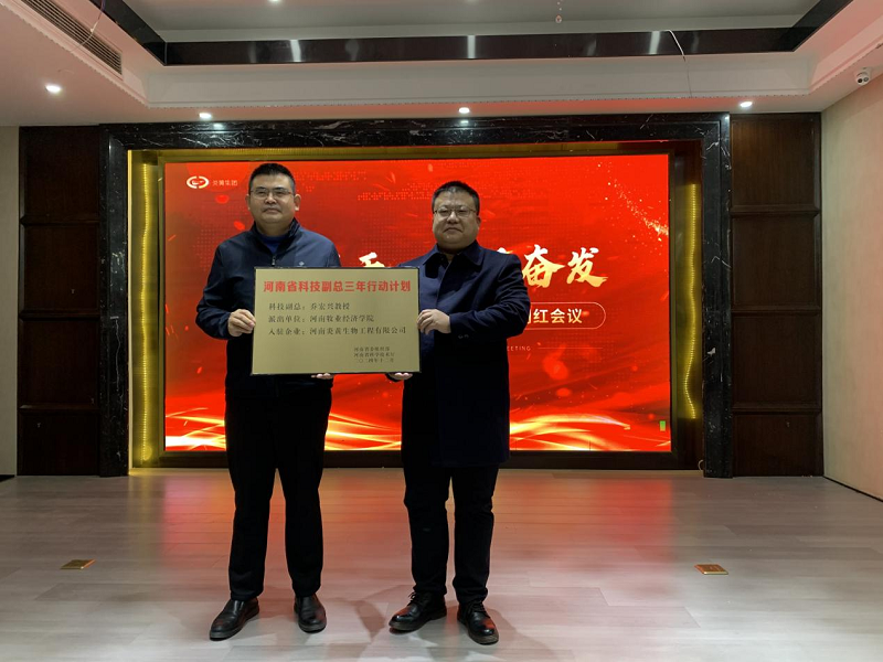 2025年2月7日,在河南炎黄生物工程有限公司开年启动会上,董事长邢得强先生为河南省首批“科技副总”、动物医药学院乔宏兴教授举行“科技副总”聘任仪式并颁发证书。科技副总是河南省科教兴省、人才强省战略,充分发挥科技创新支撑引领和人才第一资源作用,打造一流创新生态,推动校企产学研融通创新。乔宏兴教授与河南炎黄生物长期保持校企合作,推动企业发展,作为河南省科技特派员,为企业产品研发提供技术支持。