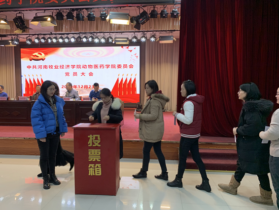 按照会议议程,会上审议并通过了党委工作报告,宣读并表决通过了《中共河南牧业经济学院动物医药学院委员会选举办法(草案)》和大会计票人员、监票人建议名单。全体参会正式党员充分行使民主权利,以无记名投票和差额选举的方式选举产生了刘永录、宋予震、汪洋、李利红、汤法银、吴玉臣、周延洲七位同志为中共河南牧业经济学院动物医药学院委员会新一届委员。大会在雄壮的《国际歌》中顺利闭幕。会后,动物医药学院新一届党委召开了第一次全体委员会议,选举产生了新一届党委书记、副书记,并对新一届党委委员进行了明确分工。