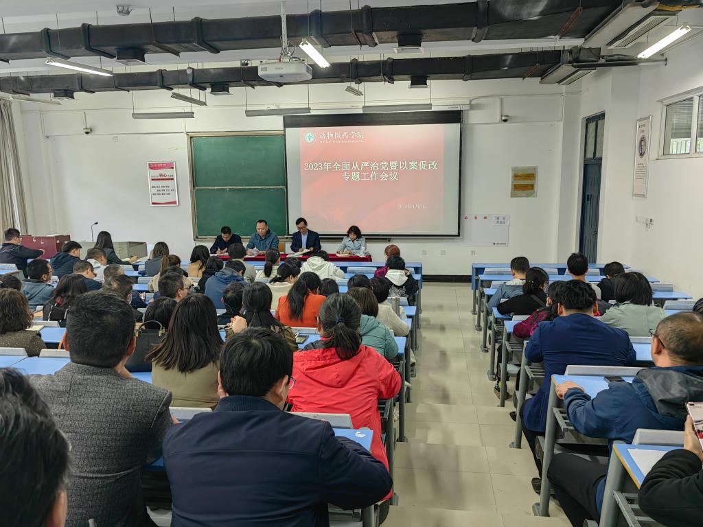 4月6日下午,动物医药学院在一号楼合204召开全面从严治党暨以案促改工作会议。会议由院党委副书记汪洋主持,学院全体教职工参会。
