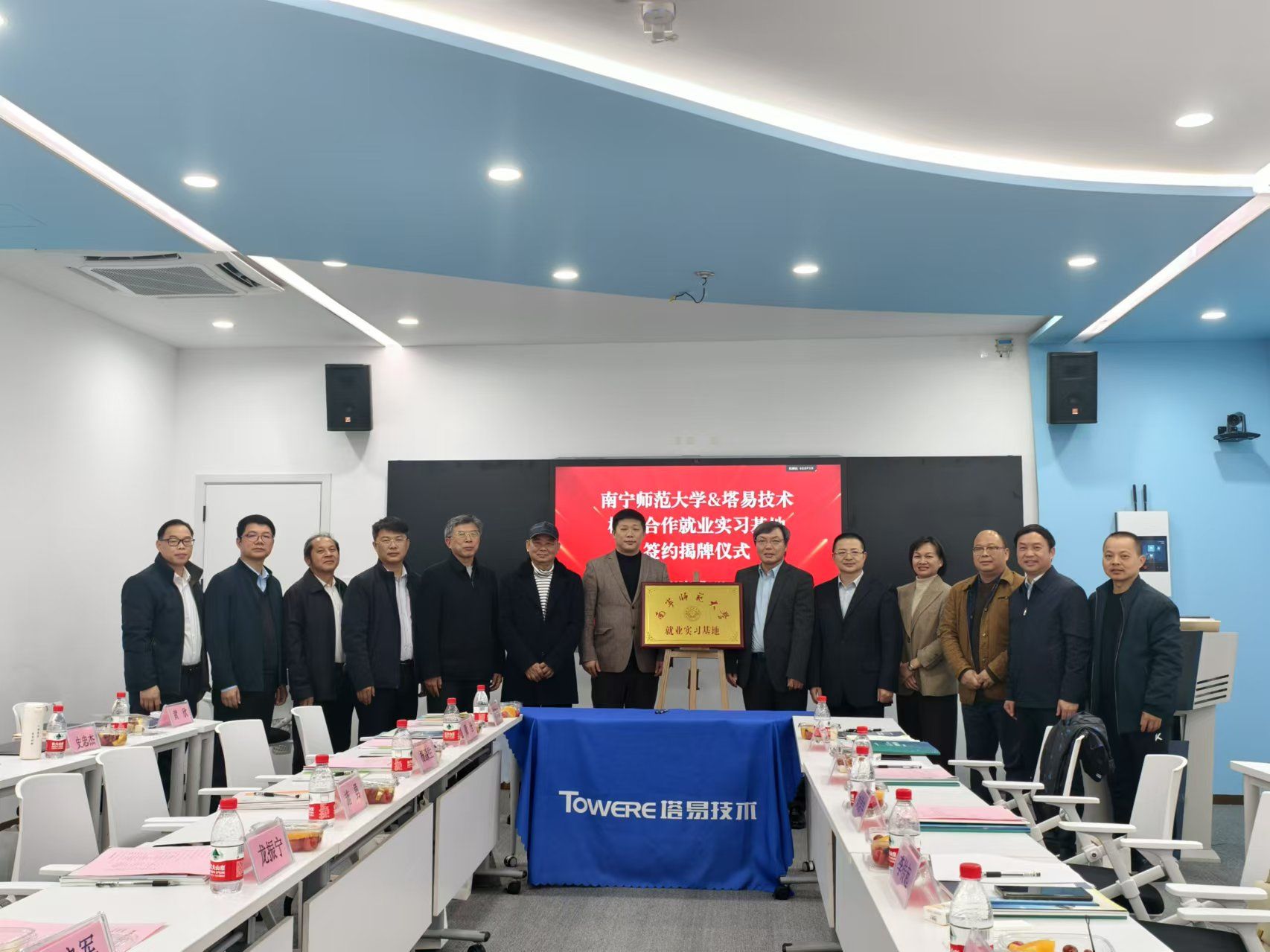 座谈会现场,王国红与龙振宁签订就业实习基地共建协议,李传起、王国红与龙振宁共同为南宁师范大学就业实习基地揭牌。双方就实习基地建设、人才联合培养、课程体系优化等方面展开了热烈讨论,并达成多项合作共识。