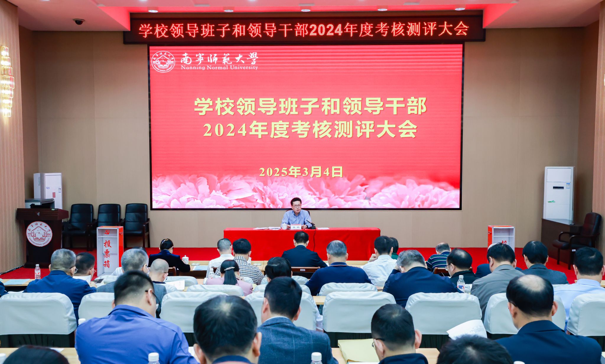 3月4日下午,我校在明秀校区文星楼301报告厅召开校领导班子和领导干部2024年度考核测评会议。自治区党委组织部干部五处处长李健生一行到会指导,全体在邕校领导出席考核测评会议,学校正处级领导干部、正高代表参加会议。会议由学校党委书记张鹏主持。