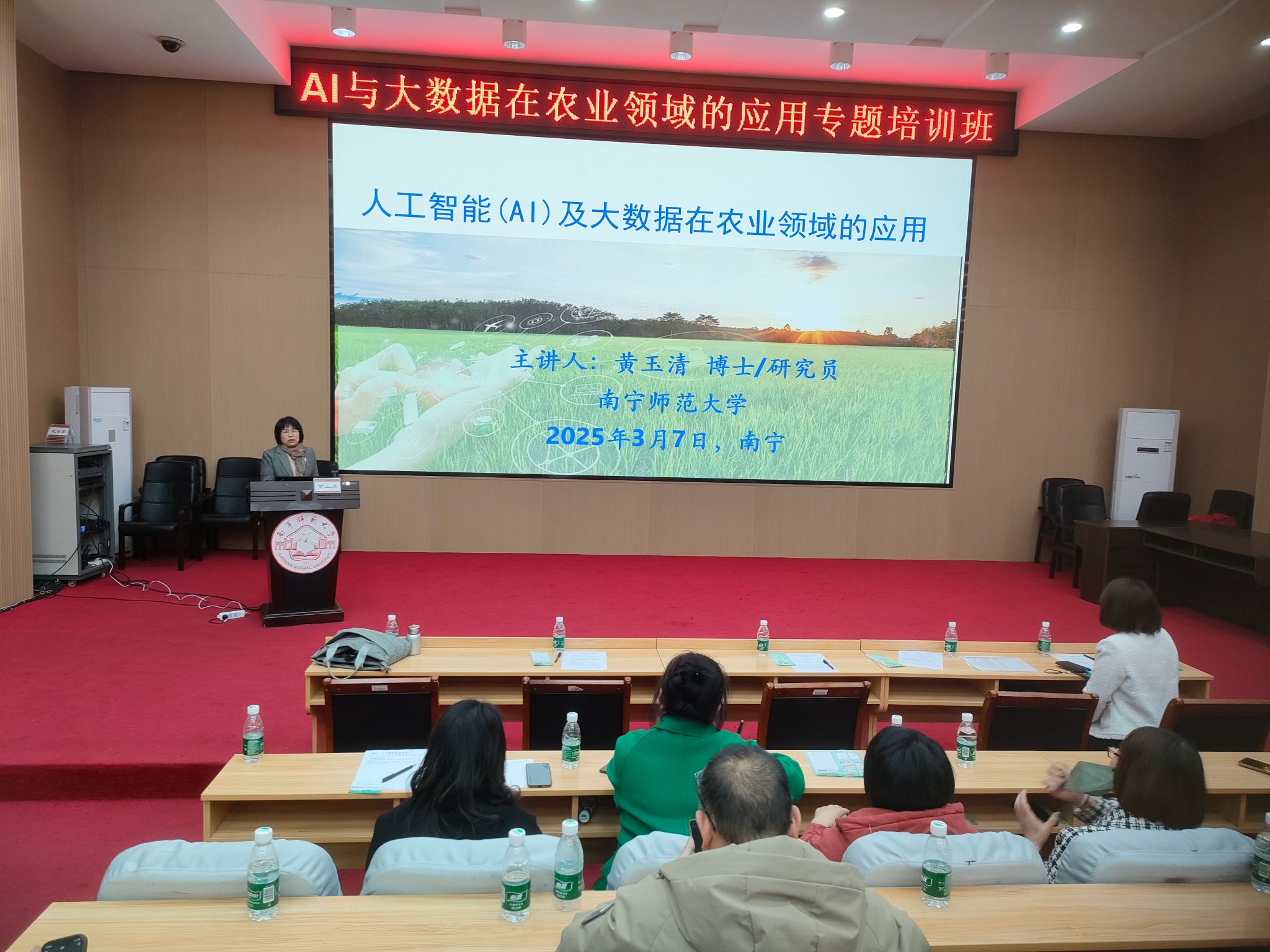 培训班上,学校地理与海洋研究院黄玉清研究员为学员们讲授了“AI与大数据在农业领域的应用”专题课程。她系统剖析了AI与大数据技术在农业生产、管理、决策等全链条中的应用场景与实践路径。学校网络信息中心龙世荣教授带来了DeepSeek技术在农业领域应用的分享,详细介绍了DeepSeek技术特点以及其在农业领域的实操技能,为学员们提供了丰富的学习资源和实践经验。