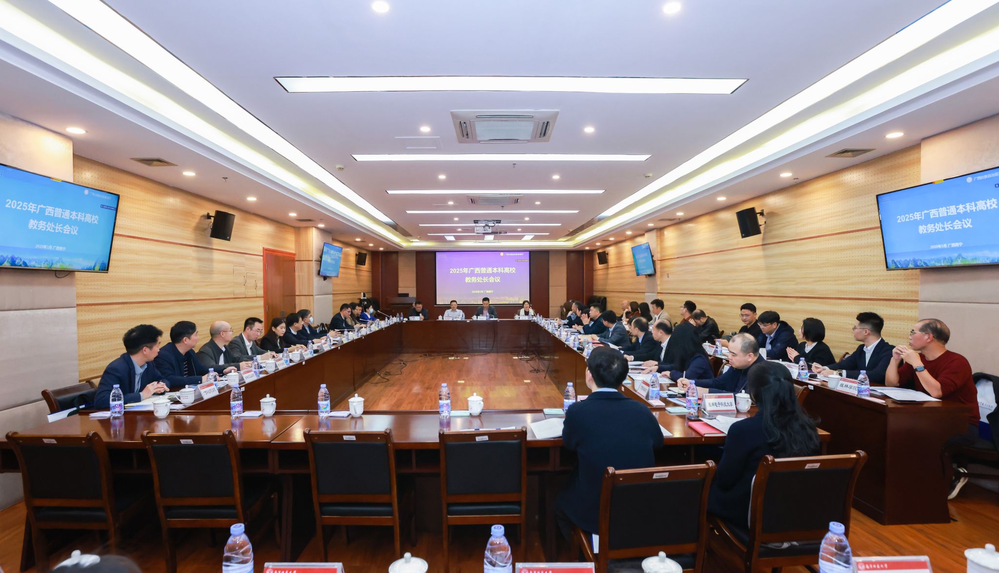 为落实全国教育大会和《教育强国建设规划纲要(2024—2035年)》精神,部署2025年度广西普通本科教育教学重点工作,3月13日下午,广西普通本科高校教务处长工作会议在我校顺利召开。自治区教育厅高教处处长傅源方出席会议并讲话,我校副校长王国红出席会议并致辞,全区35所普通本科高校教务处负责人、高教处全体人员参加会议。会议由广西教育研究院高教所所长罗恒主持。