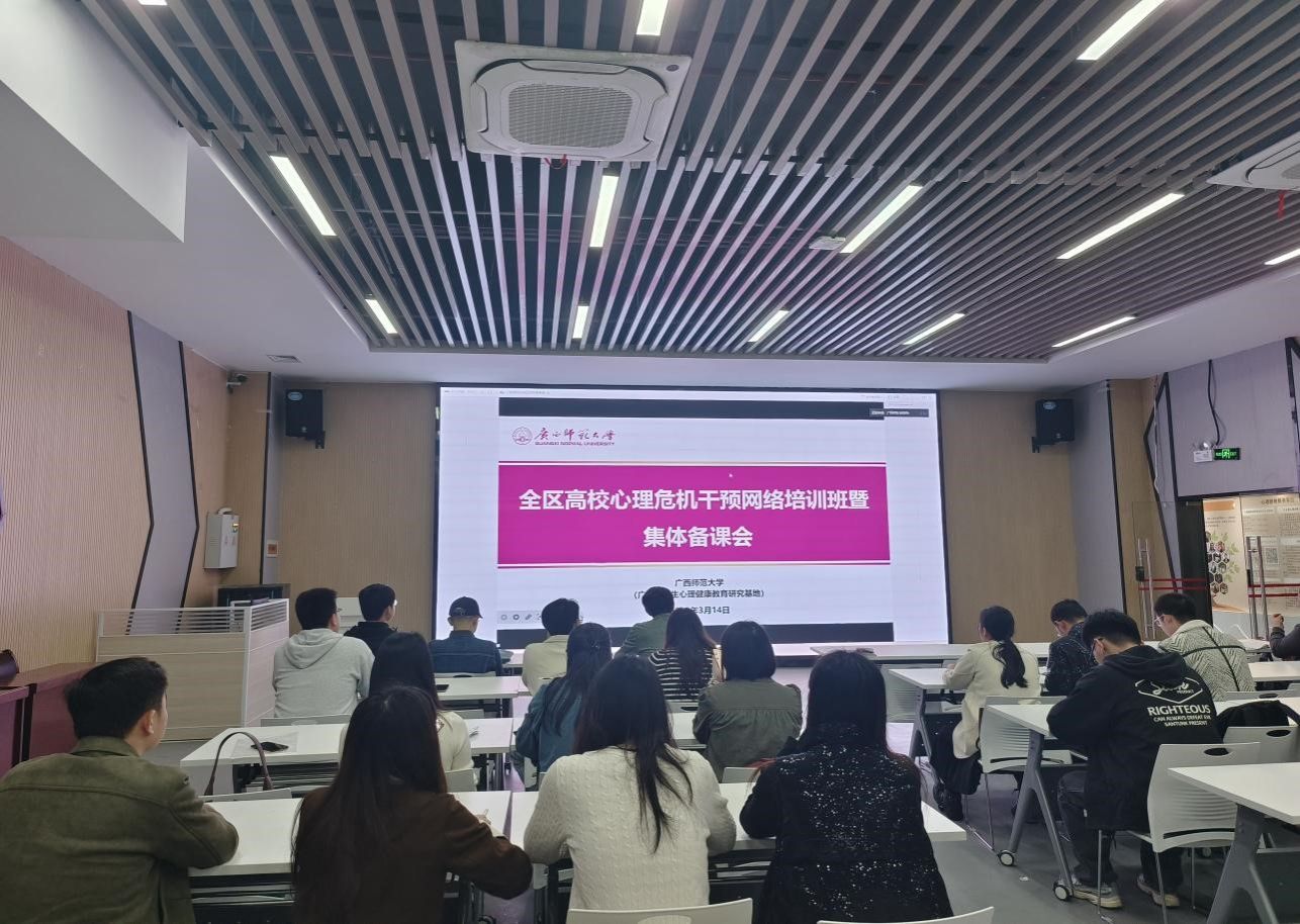 为更好地贯彻落实自治区教育厅的工作要求,进一步提升我校大学生心理危机干预工作的针对性与实效性,3月14日,我校学工部(处)组织各学院专职辅导员、班主任以及学工团委的全体人员,分别于明秀校区、武鸣校区和五合校区通过线上形式参加2025年春季学期全区高校学生心理危机干预网络培训暨集体备课会。