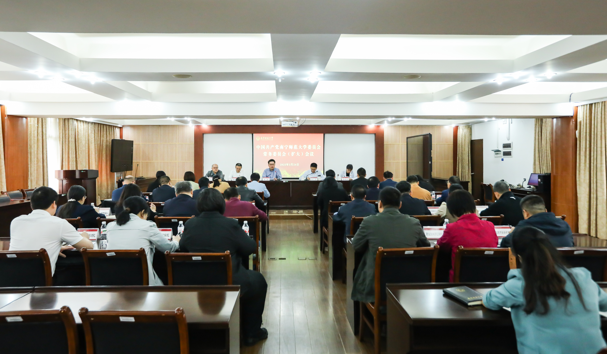 3月24日,学校党委常委会召开扩大会议,传达学习自治区党委办公厅印发的《关于在全区开展深入贯彻中央八项规定精神学习教育的实施方案》的通知精神,审议《中共南宁师范大学委员会深入贯彻中央八项规定精神学习教育实施方案》和《中共南宁师范大学委员会关于深入贯彻中央八项规定精神学习教育工作专班设置方案》,研究部署贯彻落实工作。学校党委书记张鹏主持会议并作动员讲话,学校领导班子成员及二级党委书记、有关部门负责同志参加会议。
