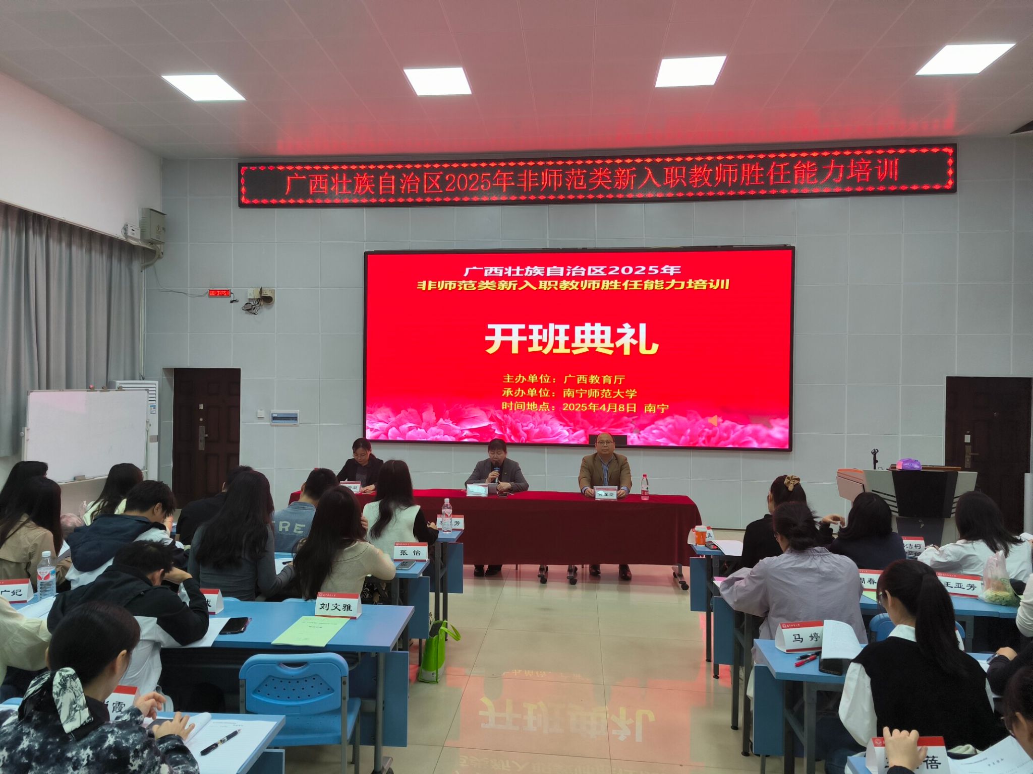 4月14日,广西2025年非师范类新入职教师胜任能力培训在我校圆满收官。培训于4月8日正式开启,来自广西各市县的非师范类新入职教师参加了培训。