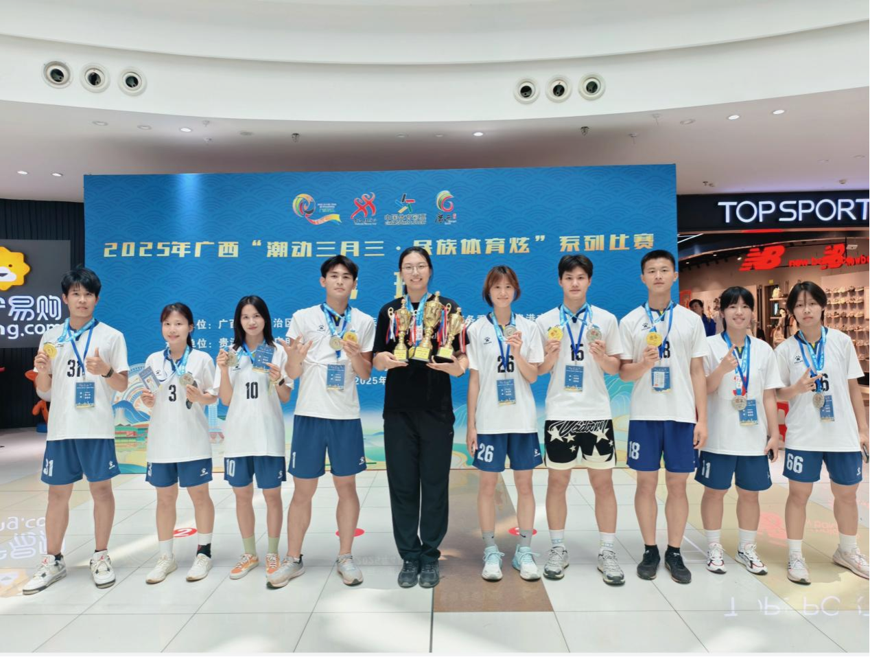 4月19日至20日,由自治区体育局、自治区民宗委、贵港市人民政府主办,贵港市文化广电体育和旅游局、贵港市民宗委承办的2025年广西“潮动三月三·民族体育炫”系列比赛在贵港市隆重举行,我校派出绣球队、花炮队、高脚竞速队、珍珠球队共4个代表队参赛。经过2天激烈的角逐,我校绣球队勇夺1金2银,高脚竞速队揽获5银1铜,花炮队、珍珠球队各摘1枚铜牌。