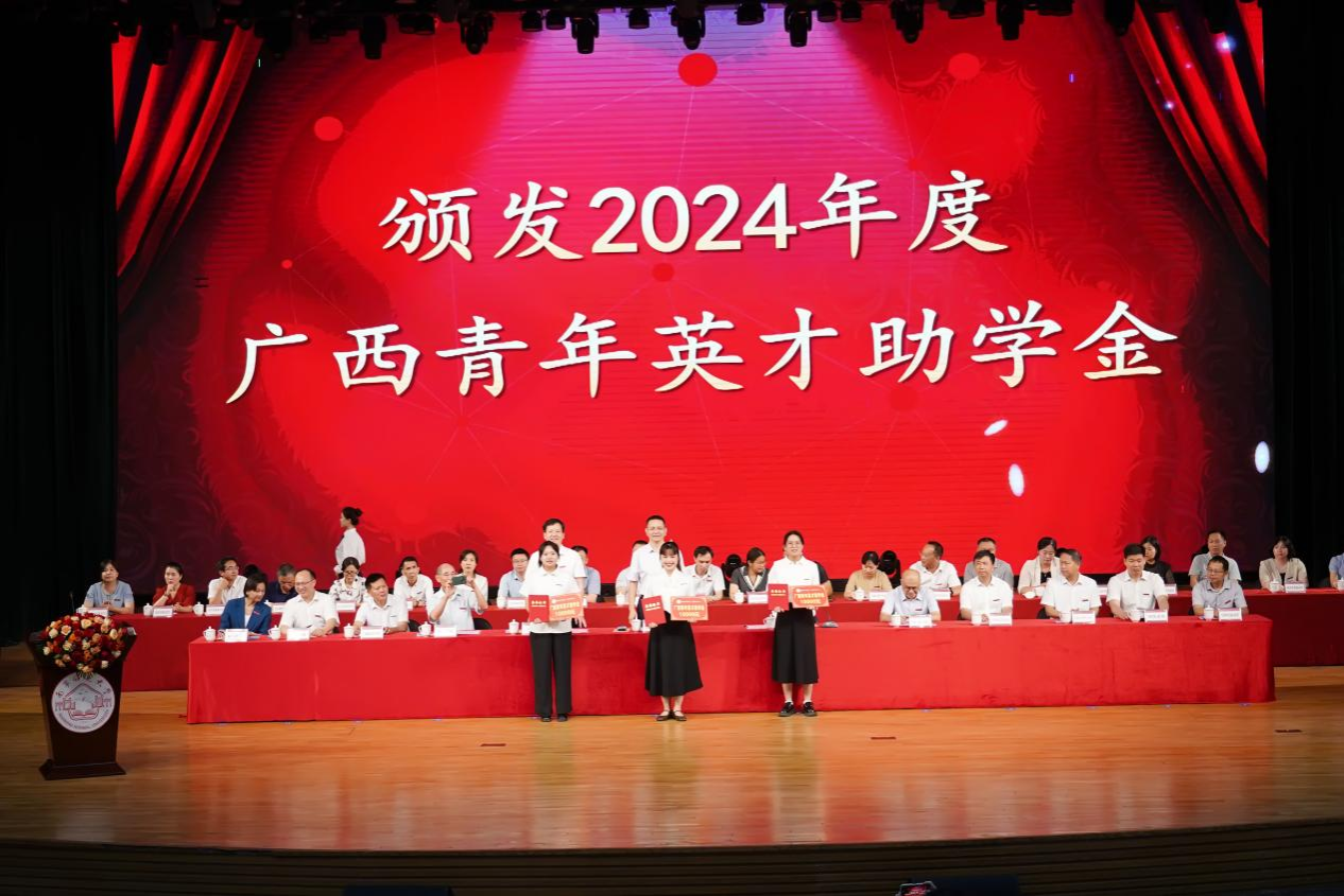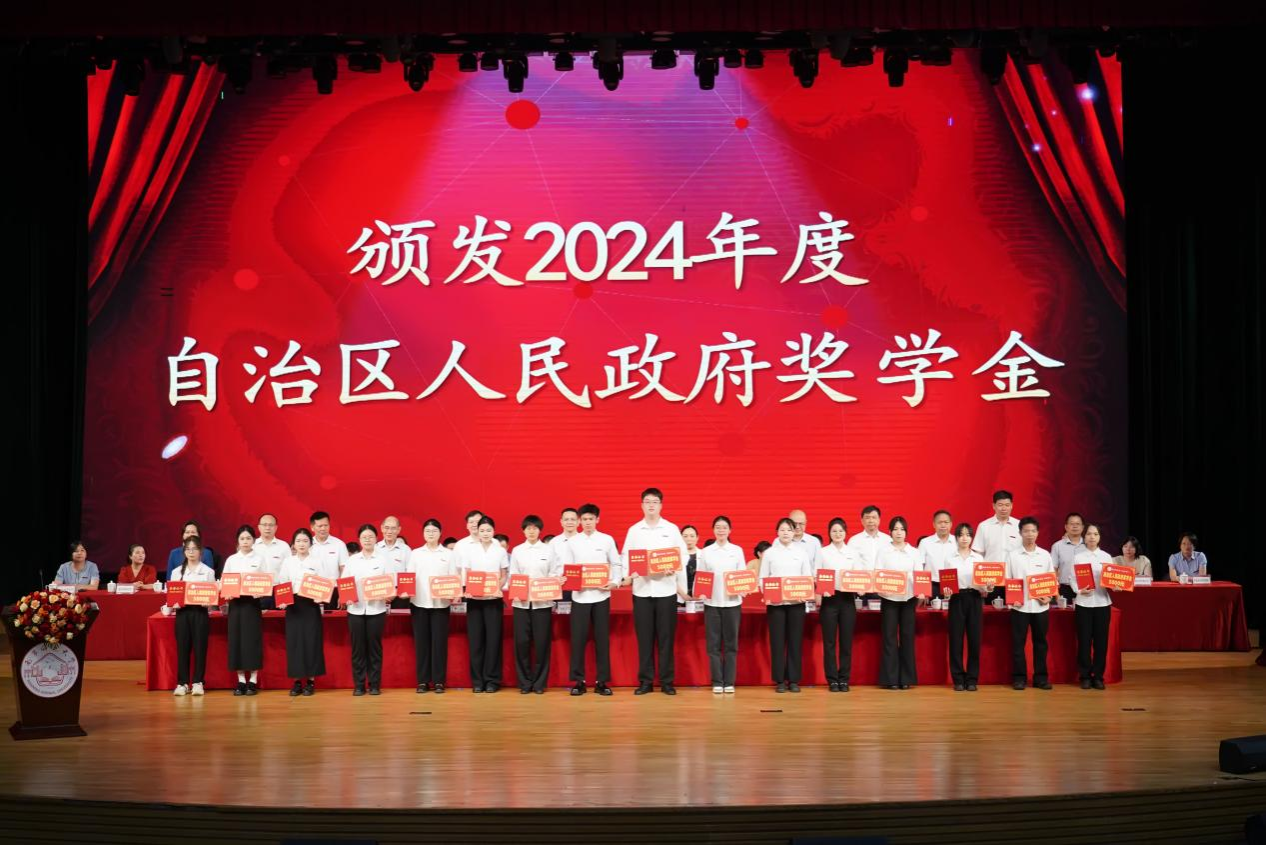 此次颁发仪式涵盖国家奖学金、至臻奖助学金、应善良助学金、国家励志奖学金、自治区人民政府奖学金、筑梦奖学金、知友奖学金、学业奖学金、国家助学金、广西青年英才助学金等10个项目,今年是学校首次将以上10个颁奖合并举行。