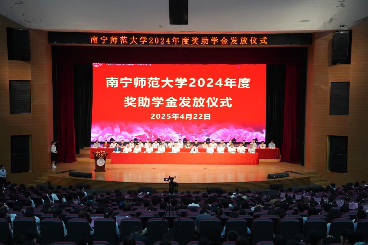 4月22日下午,我校在武鸣校区演播厅举行2024年度奖助学金发放仪式。学校校长隆广庆出席仪式并讲话。自治区新闻出版局原党组成员、纪检组长,广西新闻出版广电局原副巡视员,学校南宁校友联络处主任陈小建出席会议并致辞。学校副校长龙妮娜主持会议,学校副校长卢远、总会计师梁家斌、相关职能部门和各学院负责人及获奖助学金学生代表参加仪式。