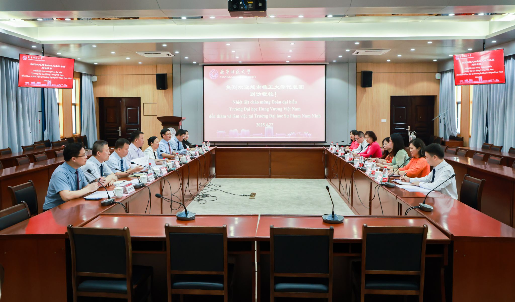 龙妮娜对代表团的来访表示热烈欢迎。她指出,中越两国是山水相连的社会主义邻邦,我校高度重视与越南的教育交流,与越南多所高校建立合作关系。她简要介绍了学校近年来各项事业发展,特别回顾了与越南雄王大学历年来交流互访、友好合作的情况。她表示,2025年是中越两国建交75周年,同时也是“中越人文交流年”,希望两校站在中越关系的新起点上,以“中越人文交流年”为契机,不断拓展合作领域与交流项目的广度和深度,提升教育国际交流与合作水平,为构建具有战略意义的中越命运共同体贡献力量。