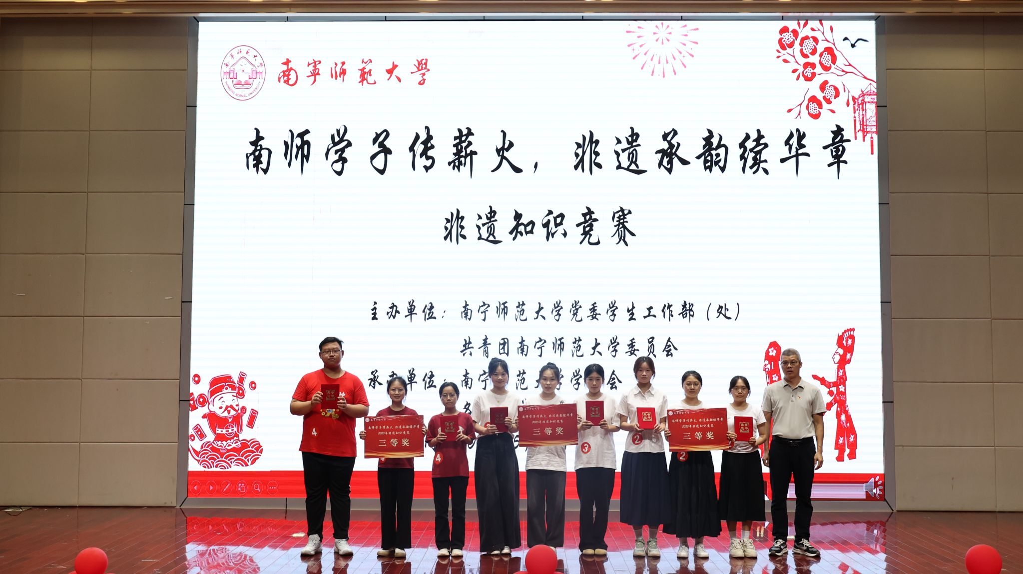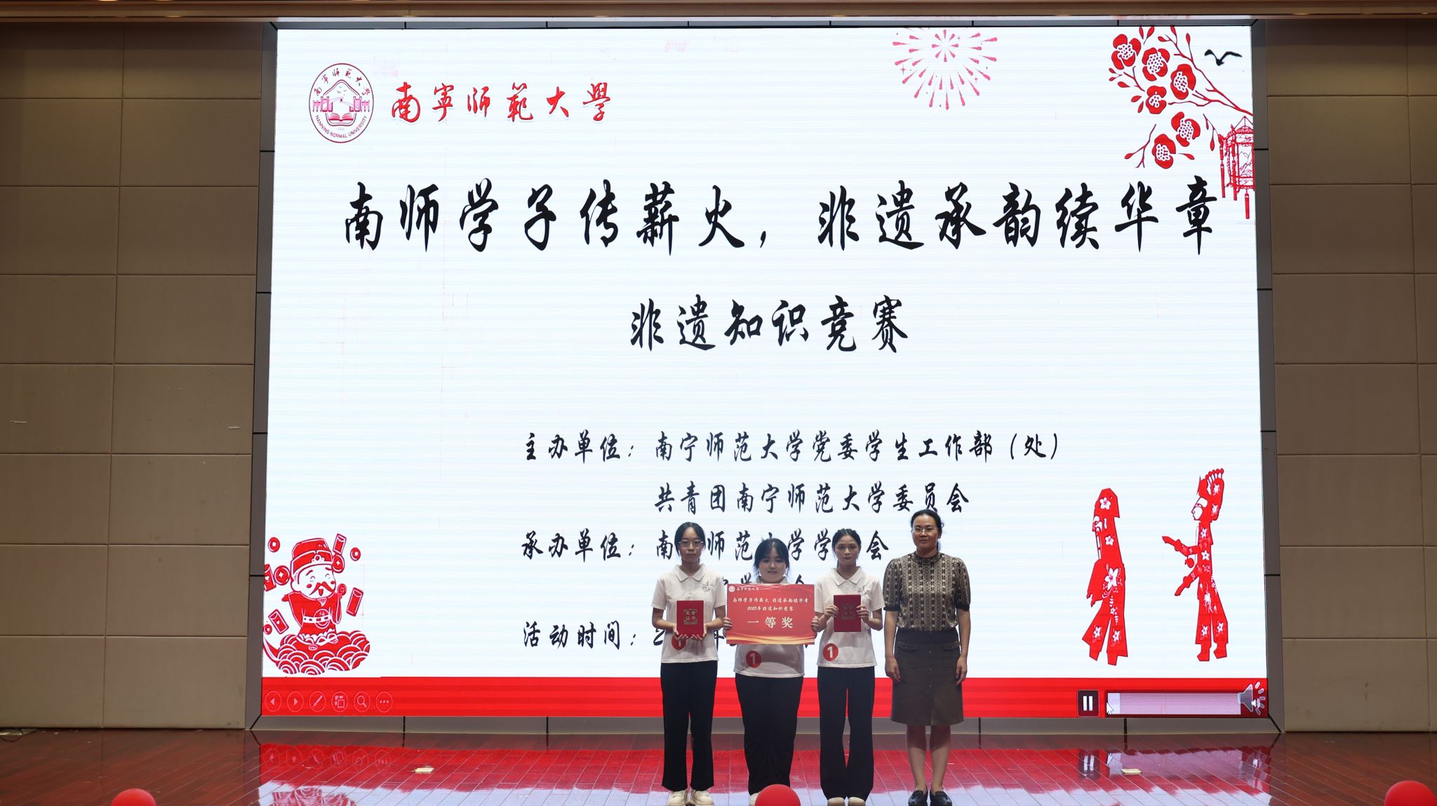 为进一步弘扬中华优秀传统文化,增强南师学子对非物质文化遗产的保护与传承,5月17日,我校在五合校区顺利举办“南师学子传薪火,非遗承韵续华章”非遗知识竞赛决赛,校团委书记区丽媛、学生工作部副部长何健、旅游与文化学院副教授方世巧担任评委。