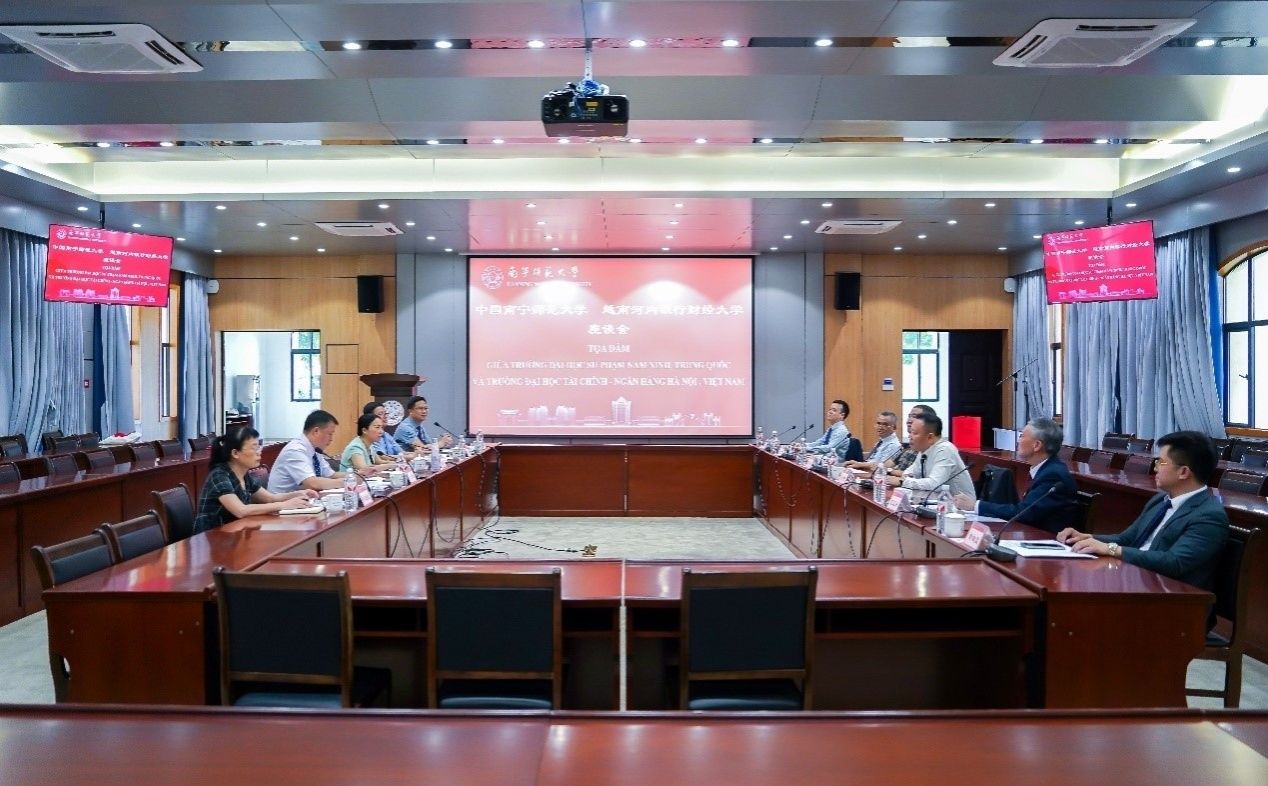 裴春边对学校的热情接待表示感谢,对南宁师范大学近年来取得的成绩感到赞叹。他简要介绍了越南河内银行财经大学发展情况及国际化办学优势和特色,表达了建立良好教育合作关系,实现合作共赢的愿景,希望在师生互访、学科建设、科研合作等方面多元交流赋能,为两国的友好合作培养更多优秀的专业人才。
