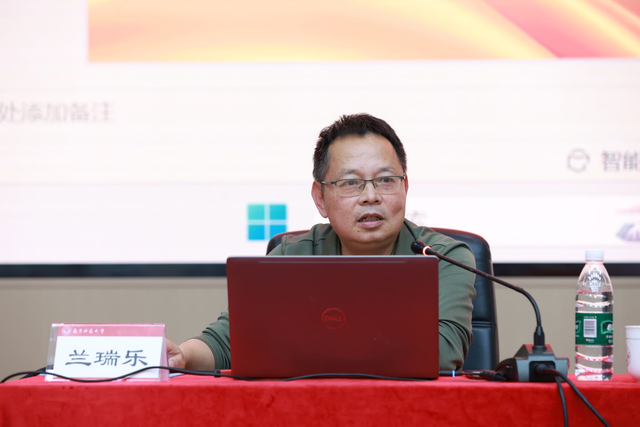 第二场培训由我校创新创业学院院长兰瑞乐主讲,校团委书记区丽媛主持。兰瑞乐以《企业微信赋能高校学生管理工作》为题,结合实用案例,展示了AI技术如何重构学工管理生态。他指出,AI技术并非替代人力,而是通过“四维智能审核”“多模态数据融合”等技术,将辅导员从事务性工作中解放,以更多精力聚焦思想教育和个性化成长指导。