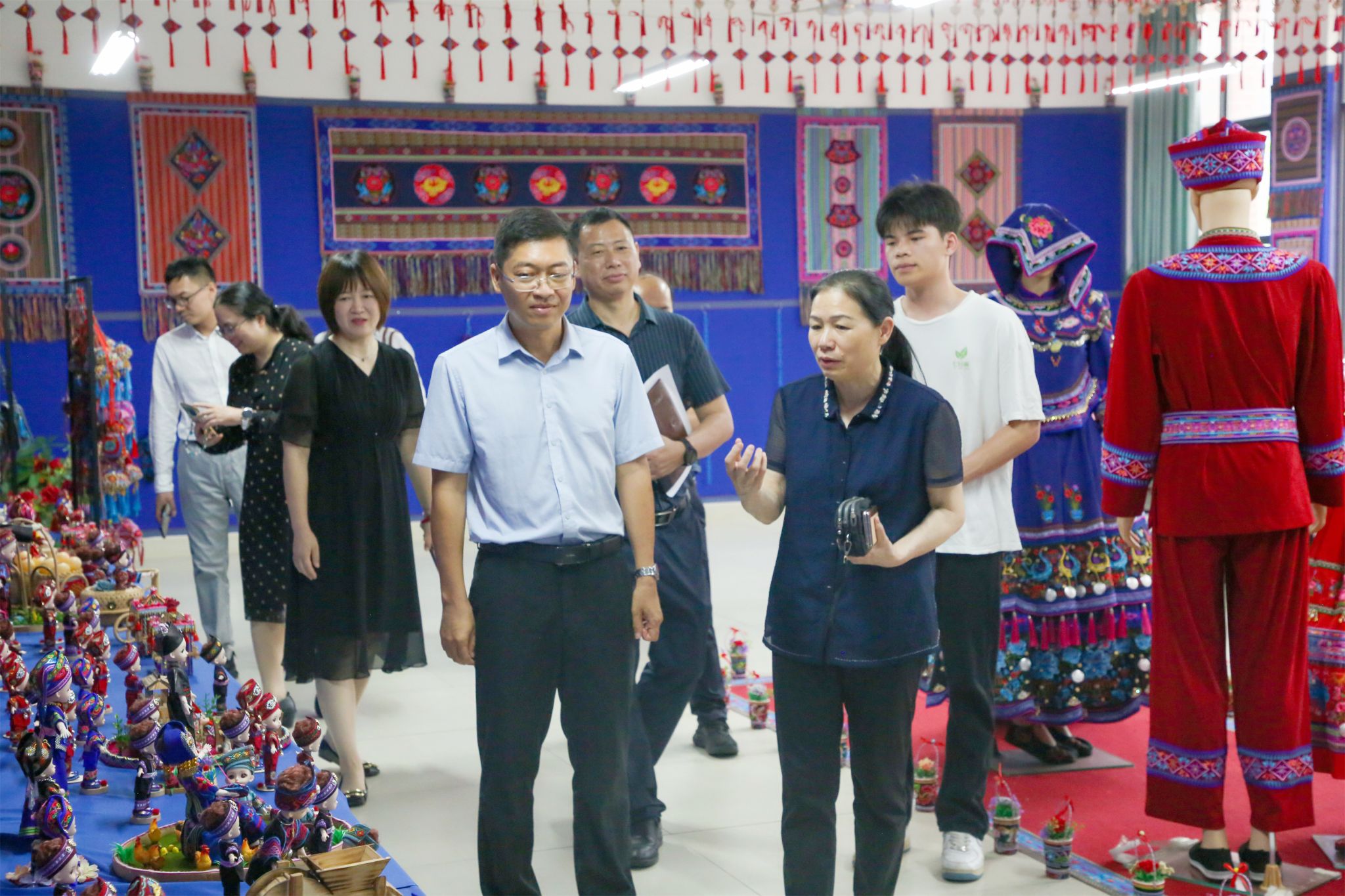 调研组一行在我校旅游与文化学院实地参观了校城统战共建基地——非遗传习那锦文创中心。该基地由武鸣区委统战部和我校党委统战部、旅游与文化学院共同建设。