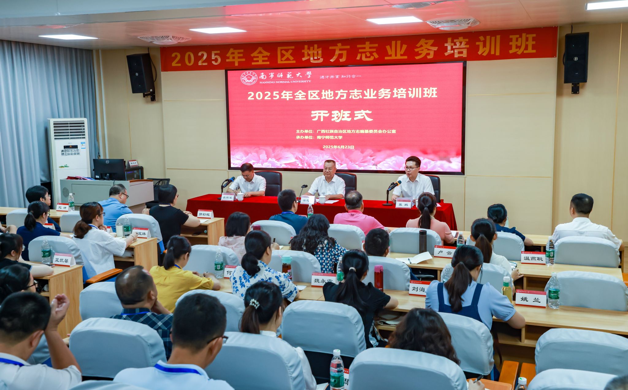 6月23日,由广西壮族自治区地方志编纂委员会办公室主办、我校承办的“2025年全区地方志业务培训班”在明秀校区开班。此次培训班旨在进一步提升广西地方志业务水平,推动地方志事业高质量发展。来自自治区、市、县(市、区)地方志业务人员以及《广西通志》和《广西年鉴》业务人员共50人参加了本次培训。
