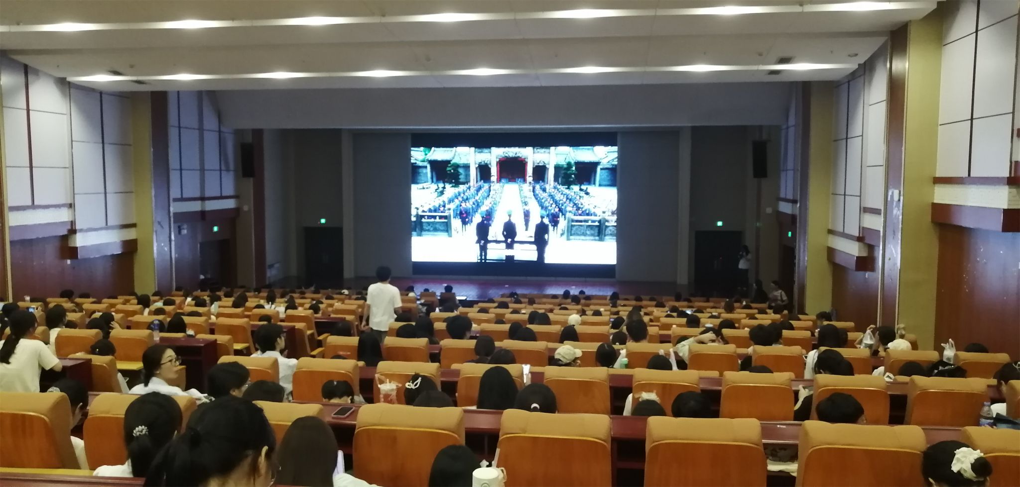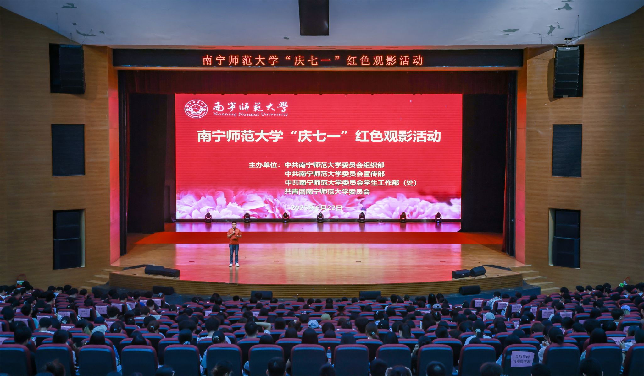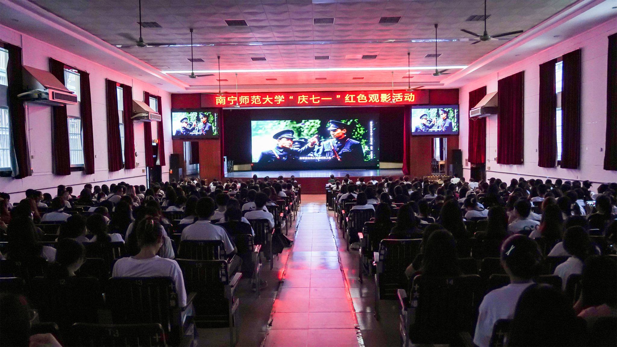 为庆祝中国共产党成立104周年,我校在武鸣、五合、明秀三个校区同时开展“庆七一”红色观影活动。学校纪委书记李美清,学校相关职能部门负责人及老师,与来自各学院共2000余名师生一同观看了红色主旋律电影《一生交给党》。