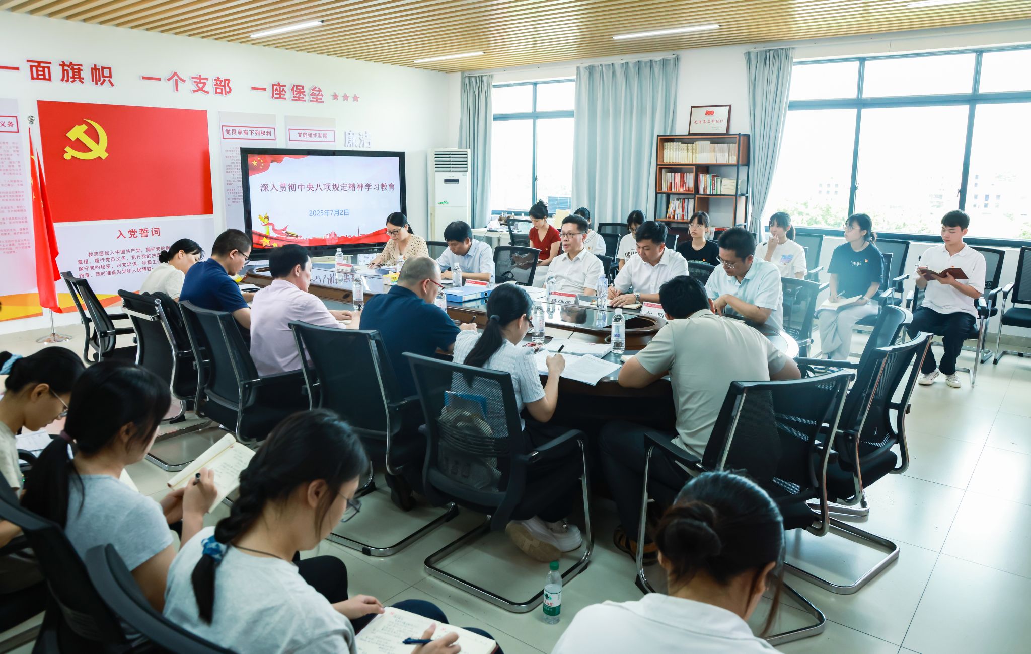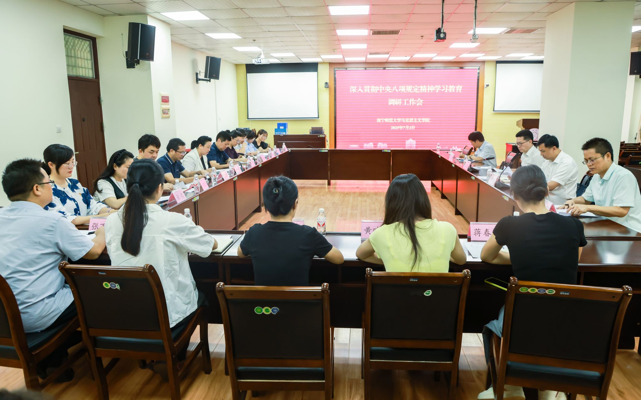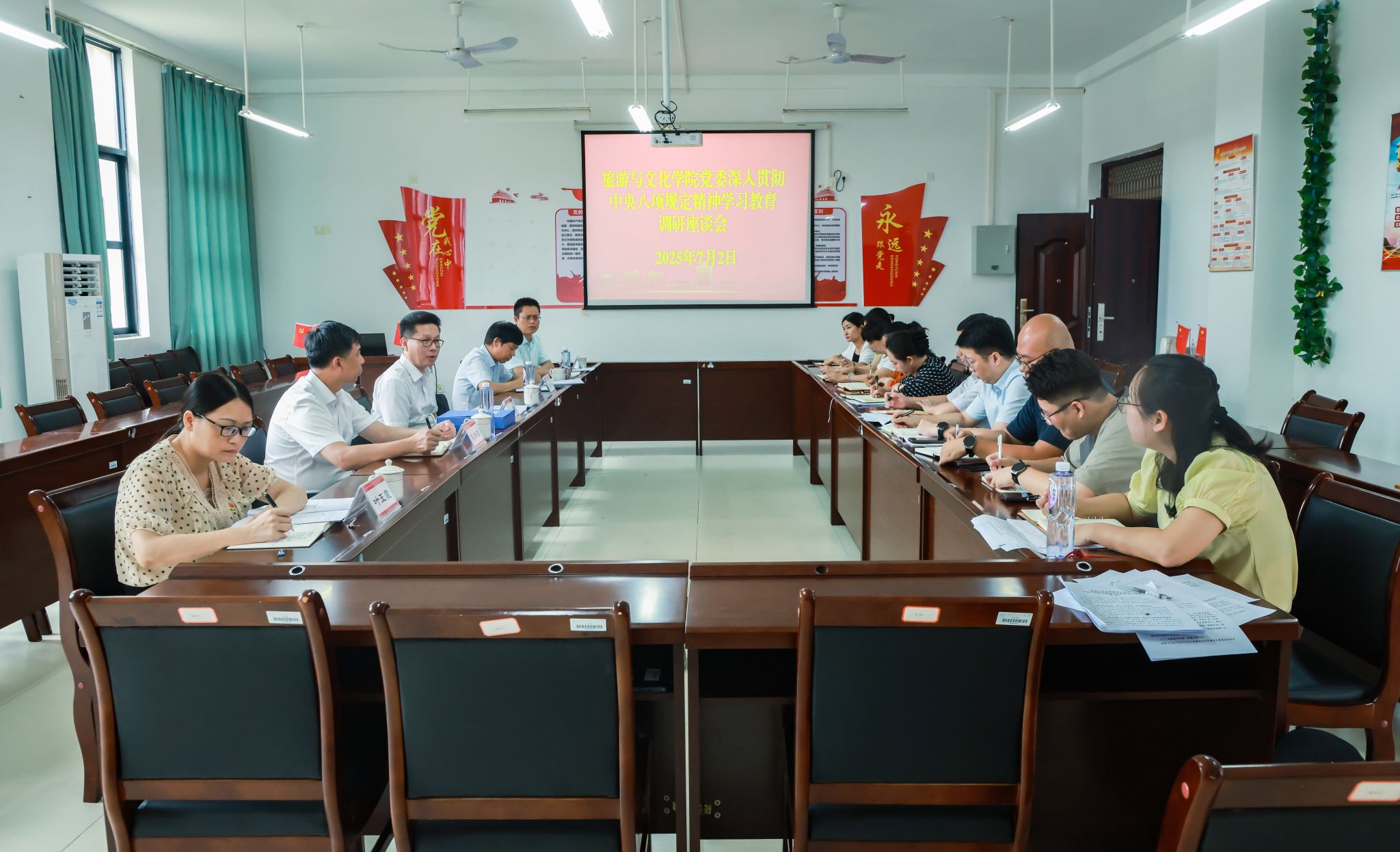 为持续推动学校深入贯彻中央八项规定精神学习教育走深走实,7月2日,学校党委书记张鹏带领学校学习教育工作专班有关同志到武鸣校区旅游与文化学院、数学与统计学院和五合校区马克思主义学院、文学院等4个学院,对二级党委开展学习教育情况进行调研指导。