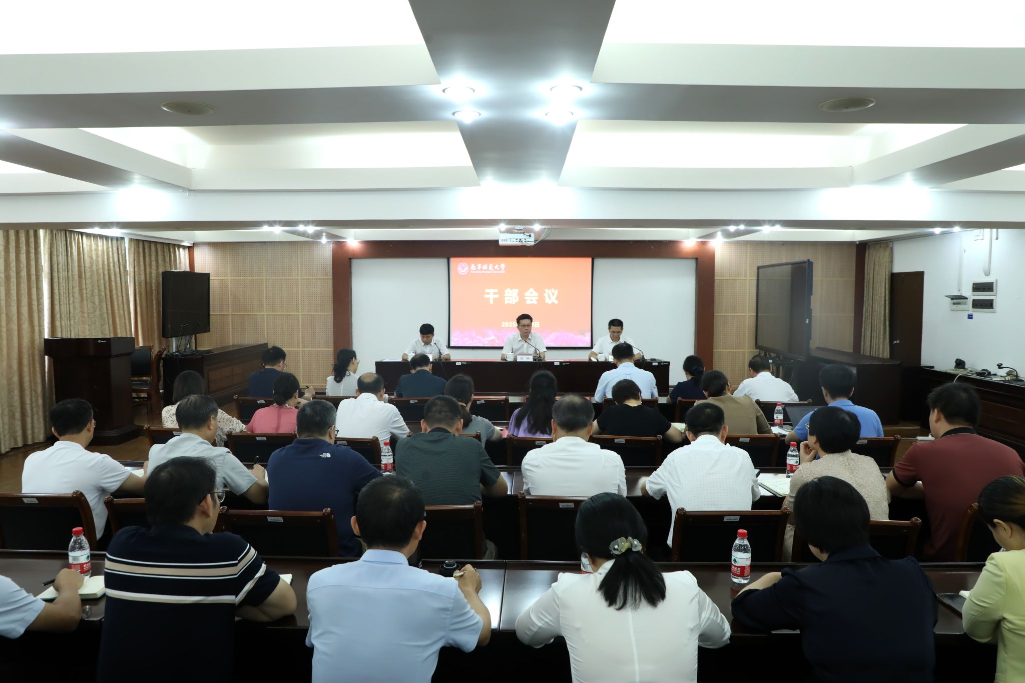 为全面贯彻落实党的二十届三中全会精神,落实教育部党组和自治区党委关于进一步全面深化改革意见,我校积极推进内设机构改革与干部队伍统筹调整,进一步统一思想、凝聚共识。7月8日上午,我校在明秀校区鸿远楼409会议室召开干部会议,40余名涉及内设机构改革调整的领导干部参会。学校党委书记张鹏、校长隆广庆出席会议并作讲话,会议由党委组织部部长李图仁主持。