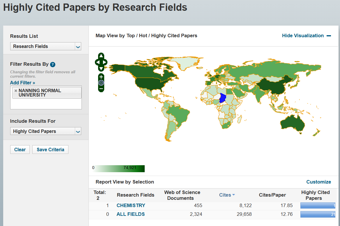 我校化学学科结合学校发展优势和人才培养定位,积极探索学科建设新模式,依托化学国家一流专业、广西天然高分子化学与物理重点实验室、广西光伏材料技术创新工程研究中心等平台,形成了以学生为中心、重视学科交叉及产教融合的创新型人才培养模式。化学学科团队在有机化学、分析化学、材料化学、物理化学等研究方向取得了一系列创新性成果。据统计,我校化学学科共发表455篇Web of Science论文,总被引频次8122次,为此次进入ESI全球前1%奠定了坚实基础。