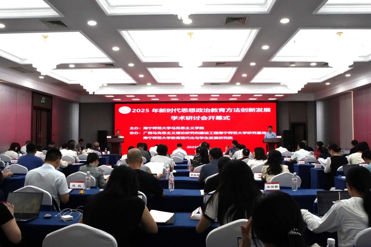新时代新征程,推进思想政治教育发展,坚持用习近平新时代中国特色社会主义思想凝心聚魂,迫切需要创新发展思想政治教育方法。7月19日,由南宁师范大学马克思主义学院主办,广西马克思主义理论研究和建设工程南宁师范大学研究基地、南宁师范大学教育现代化与学生发展研究院联合承办的新时代思想政治教育方法创新发展学术研讨会在南宁顺利举办。来自武汉大学、中山大学、浙江大学、华中师范大学、同济大学、广西科技大学、南宁师范大学等区内外近50所高校的100多位专家、学者和研究生参加本次会议。