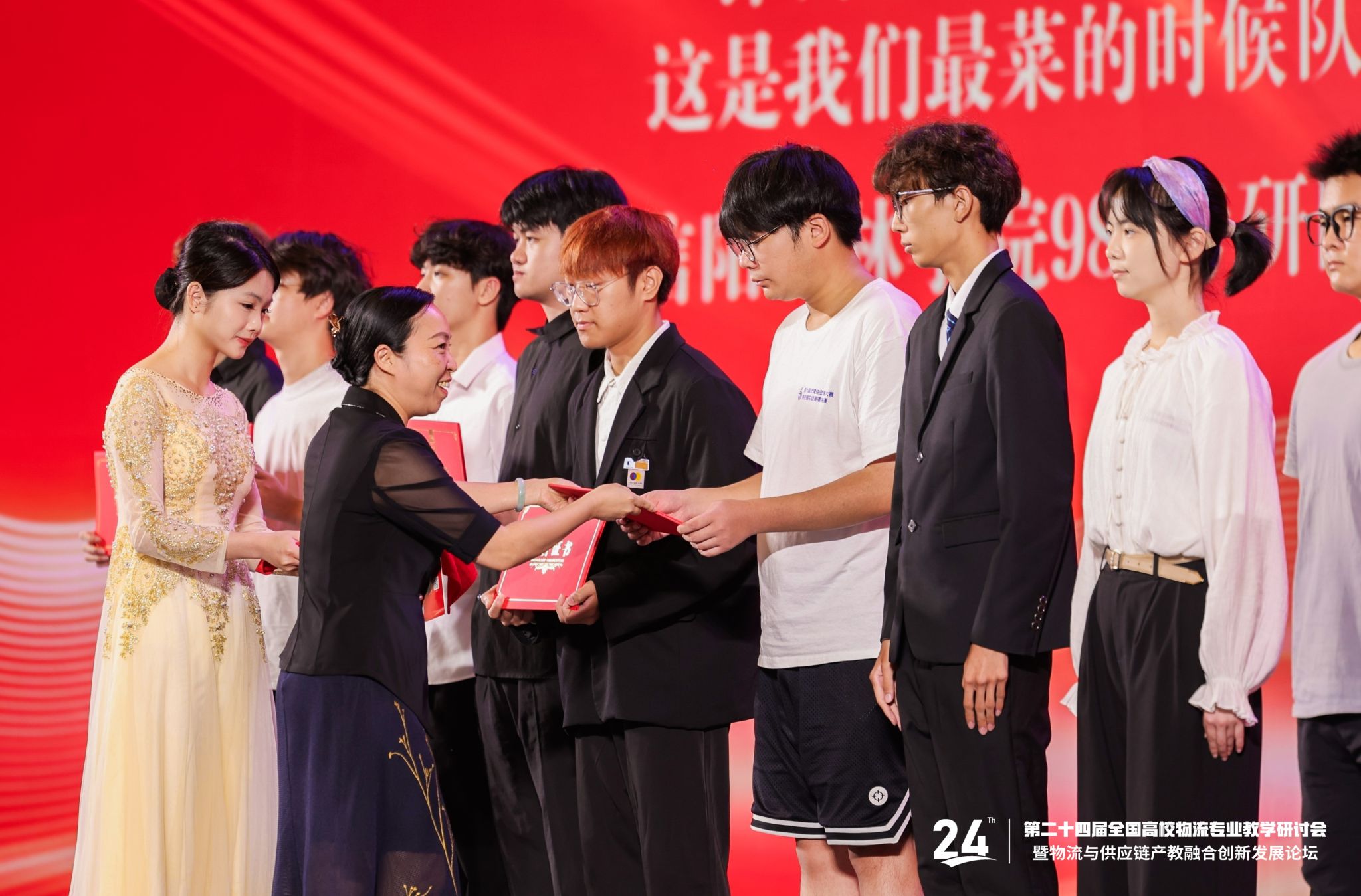 校长隆广庆、副校长龙妮娜为第六届全国供应链大赛供应链实战赛项决赛获奖选手颁奖