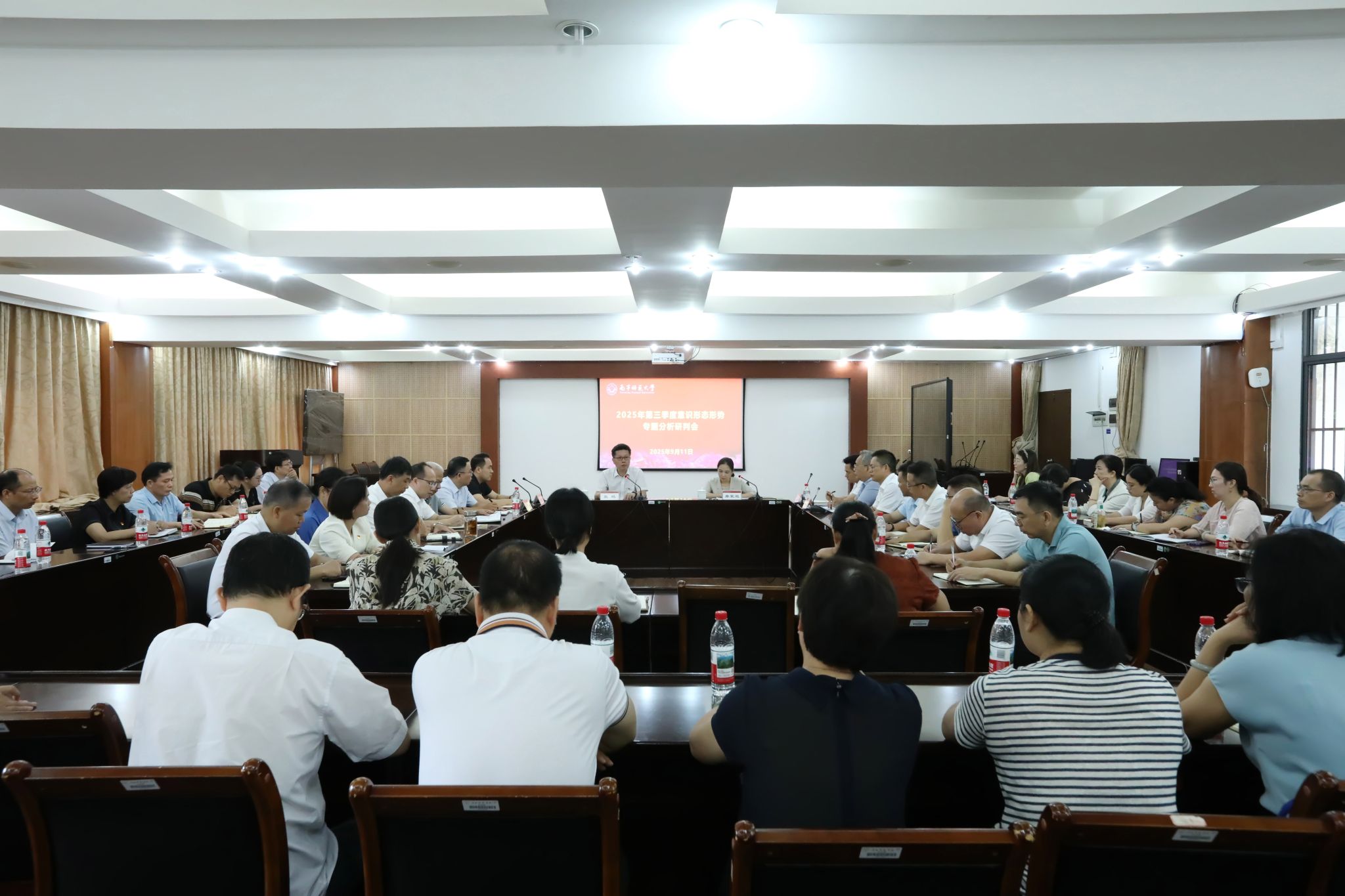 9月11日上午,我校在明秀校区鸿远楼409会议室召开2025年第三季度意识形态形势专题分析研判会,传达学习近期上级关于意识形态工作的相关文件精神,分析研判学校近期意识形态形势并部署新学期意识形态各项工作。学校党委书记张鹏出席会议并讲话,党委副书记唐荣双主持会议。
