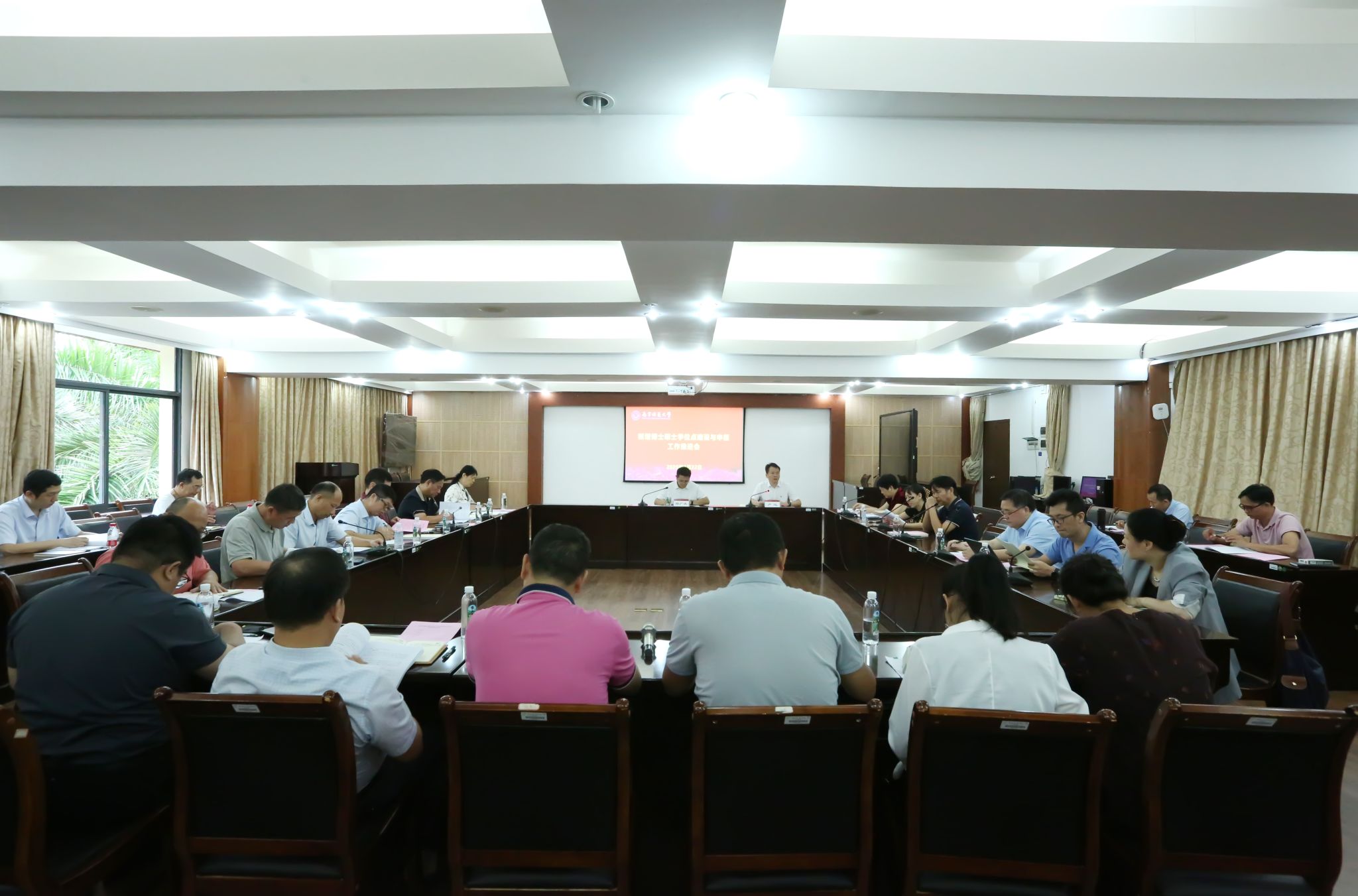 为优化学科结构,推进新一轮博士硕士学位点建设与申报,9月22日下午,我校在明秀校区鸿远楼409室召开新增博士硕士学位点建设与申报工作推进会。学校校长隆广庆、副校长卢远出席会议,党委教师工作部/人事处、发展规划与学科建设处、研究生院、科研处、财务处等相关职能部门负责人以及各学院(研究院)负责人参加会议。会议由卢远副校长主持。