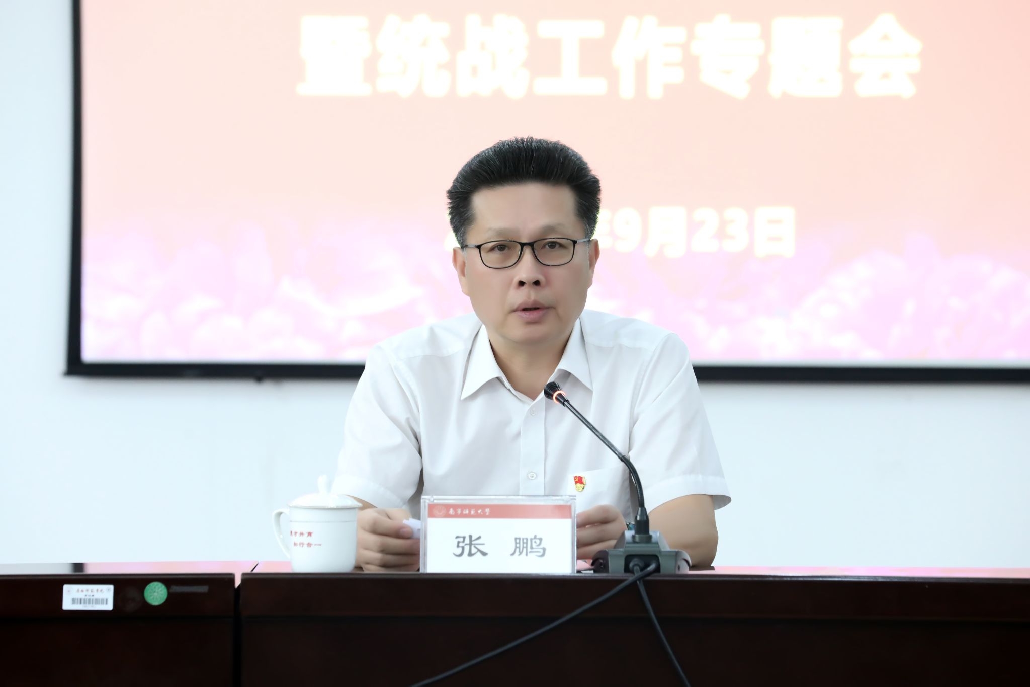 张鹏在讲话中充分肯定上半年统战工作取得的成效,并对下一阶段工作提出明确要求:一是提高政治站位,把握统战工作“三个关键”。坚持党的领导根本原则,确保正确政治方向;强化思想政治引领核心任务,筑牢“四个意识”“两个维护”思想根基;聚焦服务学校中心工作导向,发挥统战智力密集优势。二是聚焦重点任务,实施三大行动。通过专题培训、联谊交友等形式增强党外人士政治认同;通过推进“产学研用”合作加强党外人才服务地方经济社会发展;通过铸牢中华民族共同体意识,严格宗教事务管理,深化港澳台侨交流。三是强化组织保障,压实三级责任。二级党委书记“亲自部署、推动、落实”主体责任;将统战工作纳入党建考核和政治巡察等工作机制;加强队伍建设:提升统战干部业务能力,激励党外人士担当作为。