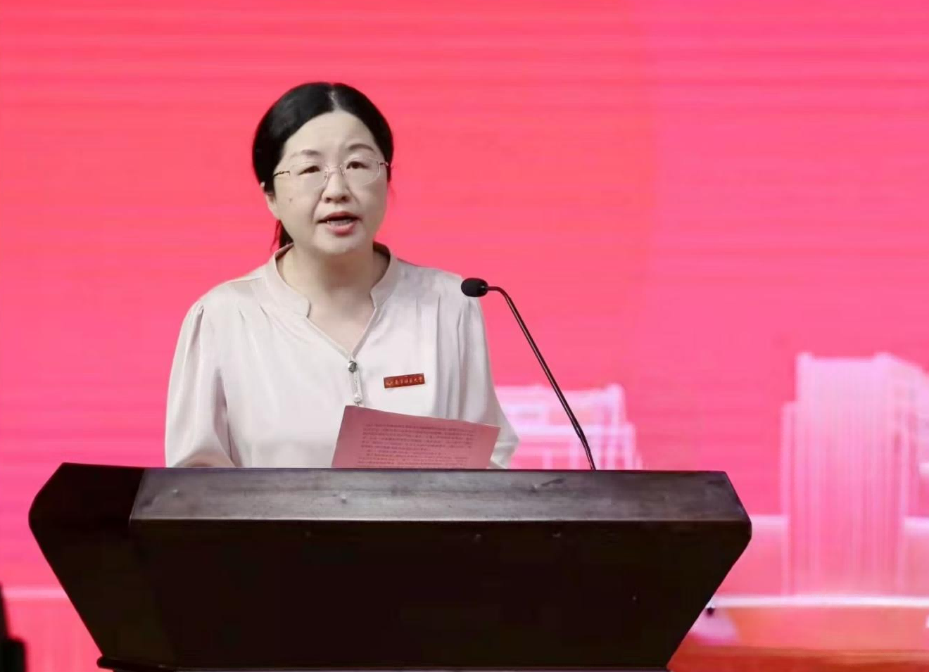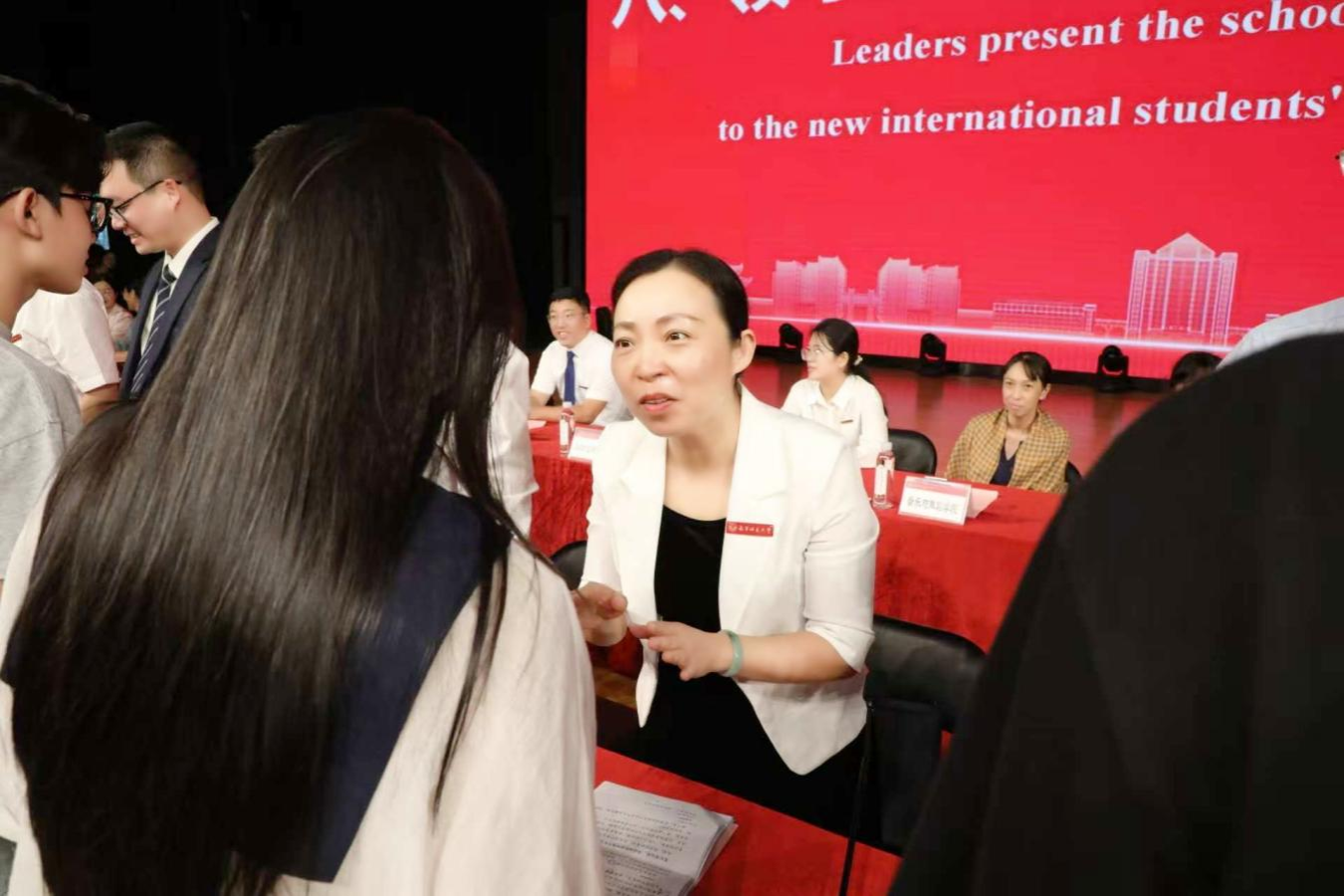 我校教师代表谢娜菲博士在发言中引用孔子名言“有朋自远方来,不亦乐乎”,表达对新同学的欢迎与关怀。她承诺将成为国际学生“学业引路人”与“生活知心友”,希望新生深耕学业、拥抱文化、勇于实践,在多元文化碰撞中成长为连接中国与世界的友好使者。