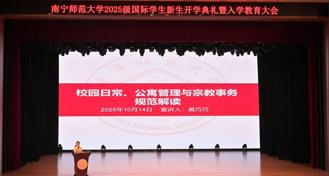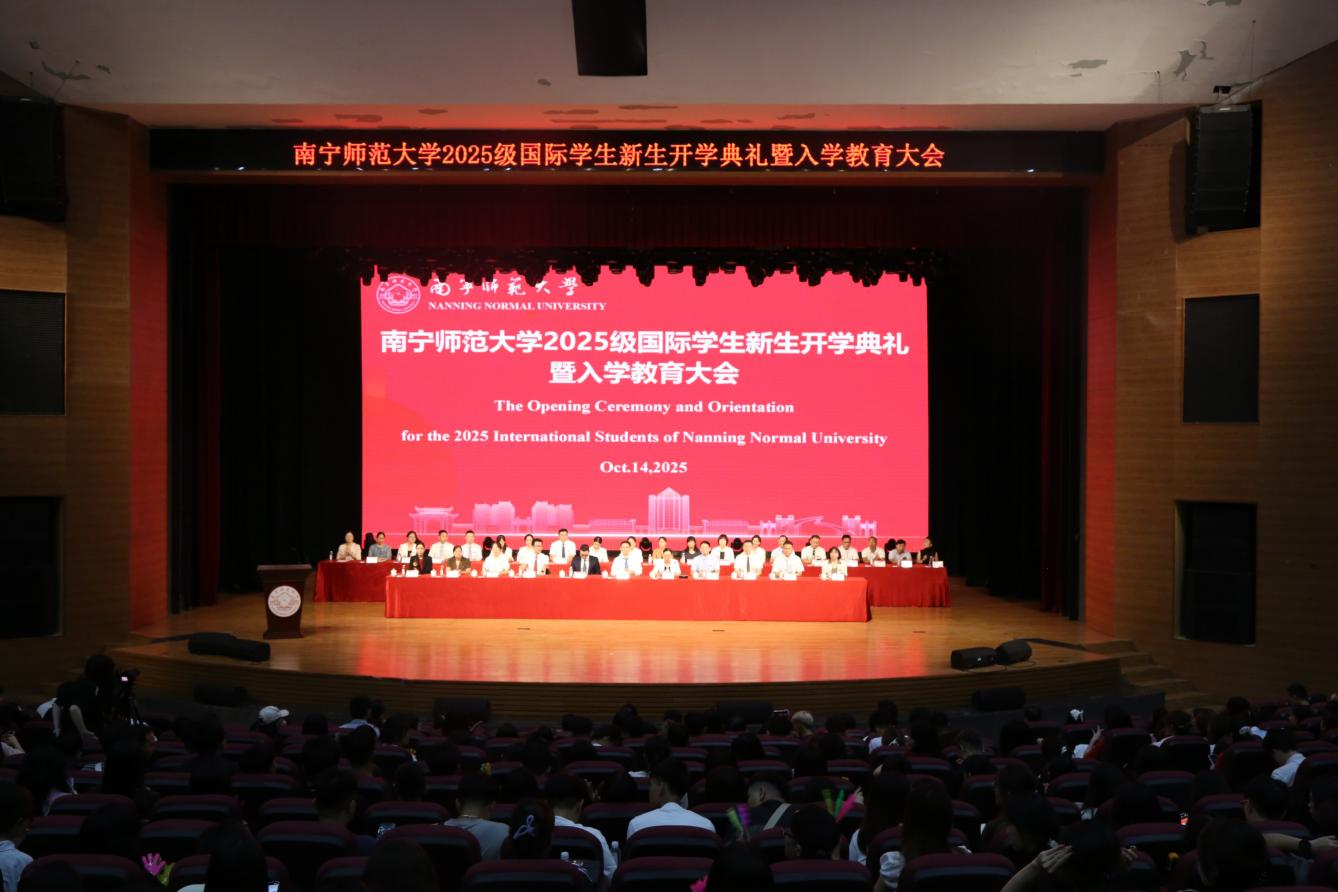 10月14日下午,南宁师范大学2025级国际学生新生开学典礼暨入学教育大会在武鸣校区1号演播厅举行。学校隆广庆校长以及来自越南雄王大学、泰国金河汉语学校的嘉宾出席了典礼。典礼由学校副校长龙妮娜主持。学校各职能部门负责人,各相关学院领导和教师代表,以及来自越南、泰国、老挝、柬埔寨、巴基斯坦、孟加拉国、哈萨克斯坦、印度、韩国、蒙古等10个国家的355位2025级国际学生全体新生及老生代表参加了活动。