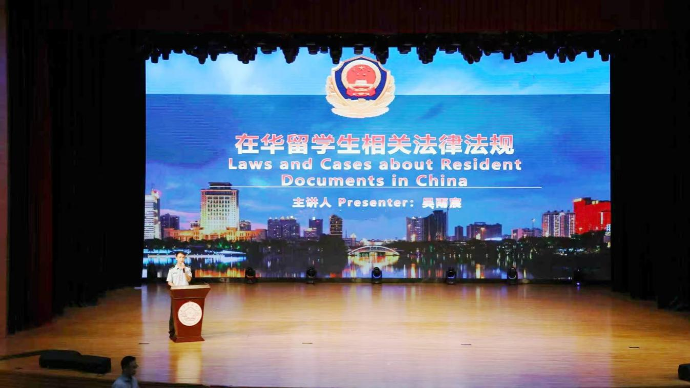 南宁市公安局出入境管理支队警官吴雨宸作入学教育讲座