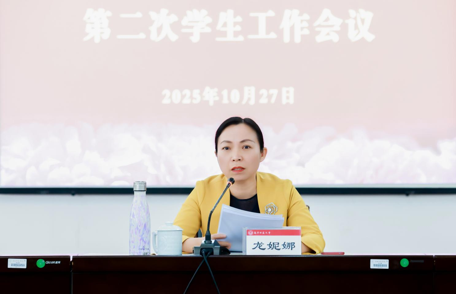 10月27日上午,我校在明秀校区鸿远楼409会议室召开2025年秋季学期第二次学生工作会议。会议紧扣立德树人根本任务,聚焦学生心理危机干预、辅导员队伍建设、毕业生高质量就业三项重点工作,开展深入研讨与任务部署。学校党委常委、副校长龙妮娜出席会议并讲话。学生工作部(处)、研究生工作部、校团委等部门负责人、各学院分管学生工作的党委副书记参加会议。会议由党委学生工作部部长刘君宇主持。