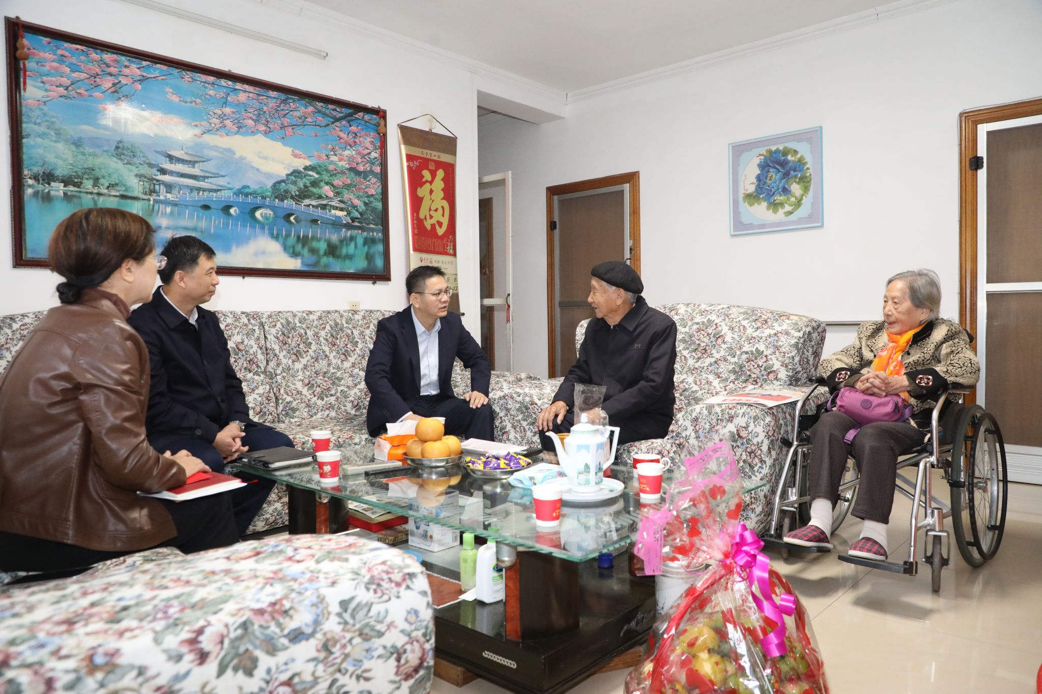 在重阳佳节来临之际,为弘扬尊老敬老传统美德,把学校的关怀与温暖切实送到离退休老同志身边,10月24日至28日,学校领导张鹏、隆广庆、唐荣双、李美清分别带队,上门走访慰问了臧慕莲、陈毓文、杨焕典、林士良、李寿益、邓锡元、黎介和张家连等90岁以上高龄离退休教职工代表,向他们送上诚挚问候和节日祝福,对他们为学校建设发展作出的重要贡献表示崇高敬意。党办校办、党委组织部、党委宣传部、离退休教职工服务中心等相关部门人员参加走访慰问。