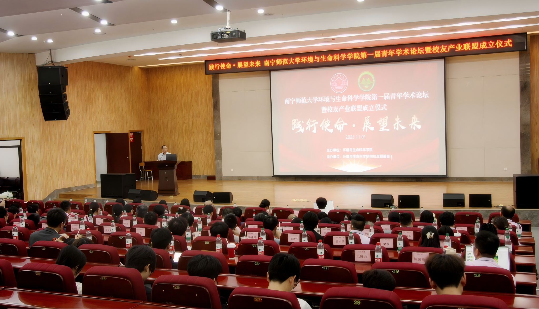 11月1日,我校环境与生命科学学院在武鸣校区图书馆报告厅举办第一届青年学术论坛暨校友产业联盟成立仪式。本次活动由环境与生命科学学院主办,环境与生命科学学院校友联谊会承办。学校总会计师梁家斌出席会议并致辞。学校科研处、国内合作处等部门负责人,环境与生命科学学院领导班子参会。论坛吸引了来自区内外近百名校友参加。