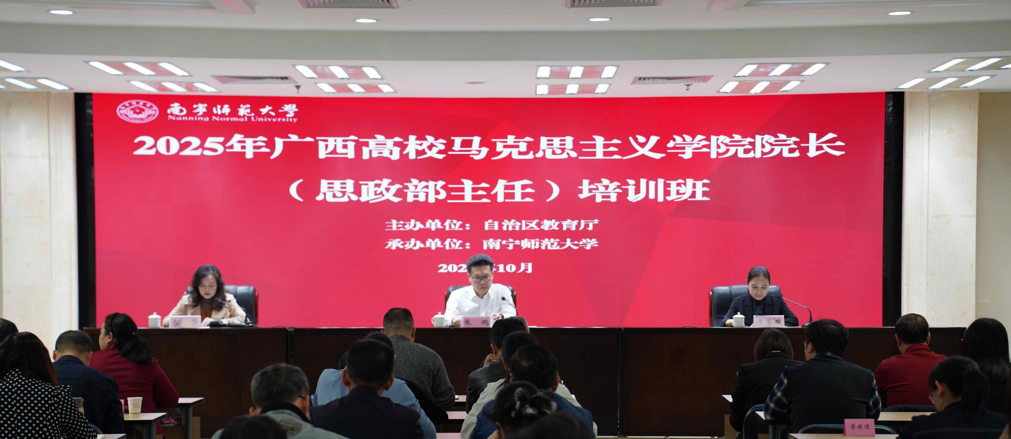 为深入学习贯彻习近平新时代中国特色社会主义思想,加强广西高校马克思主义学院建设,切实提升马克思主义学院院长(思政部主任)综合能力。近日,由广西壮族自治区教育厅主办,南宁师范大学承办的2025年广西高校马克思主义学院院长(思政部主任)培训班在柳州举办。学校党委书记张鹏出席开班仪式并致辞,开班仪式由学校党委副书记唐荣双主持。