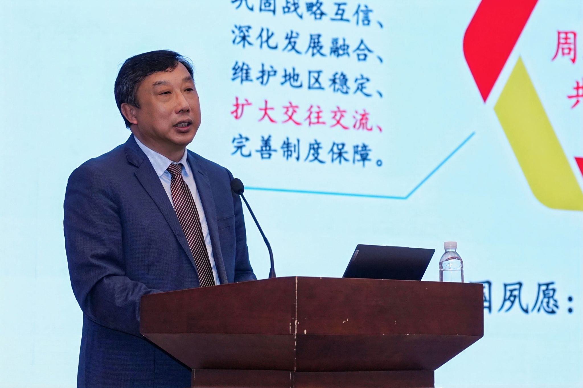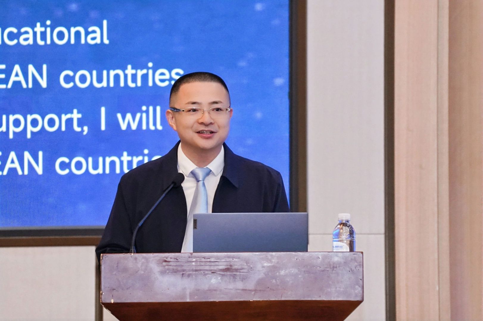 李传起代表中心致开幕词。他简要介绍了中国—东盟职业教育研究中心的基本情况和发展成效,阐明了职业教育数字化转型浪潮下,中国—东盟职教合作的重要意义与未来方向。