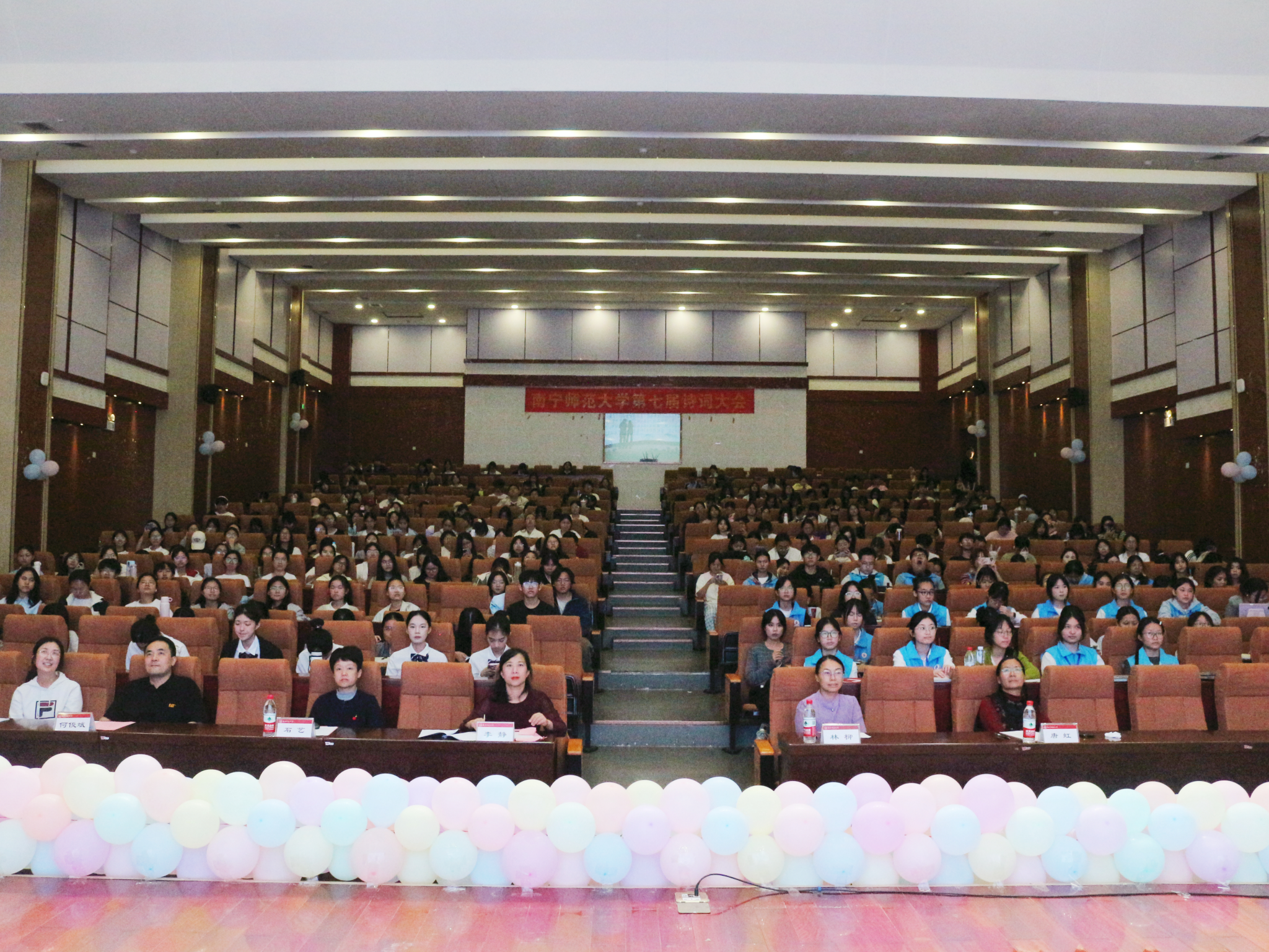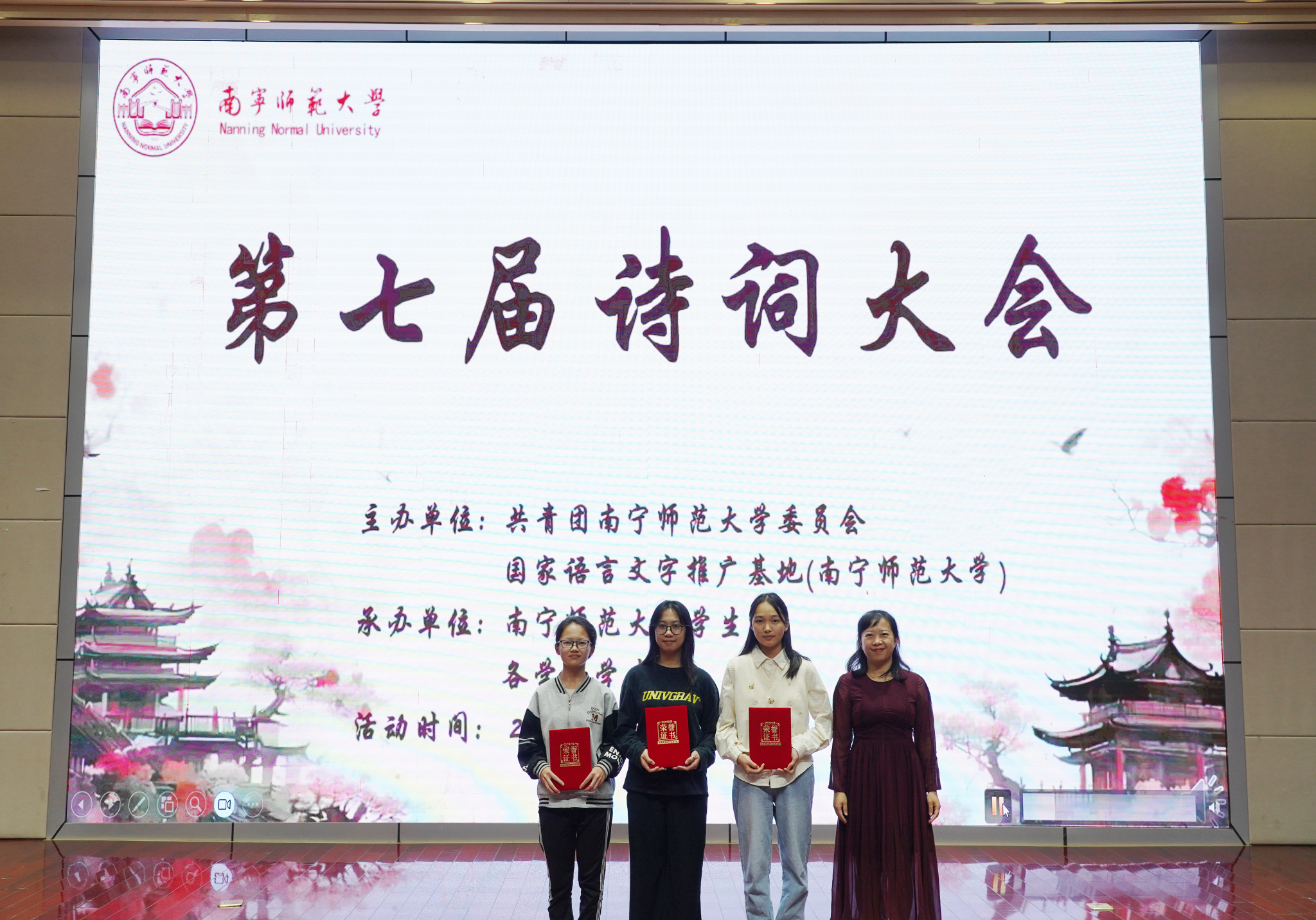 本次大会由校团委、国家语言文字推广基地(南宁师范大学)联合主办,校学生会承办,校团委副书记(主持工作)李静、党委学生工作部副部长林柳、校团委副书记何俊斌、文学院石艺教授、唐虹副教授共同担任评委。