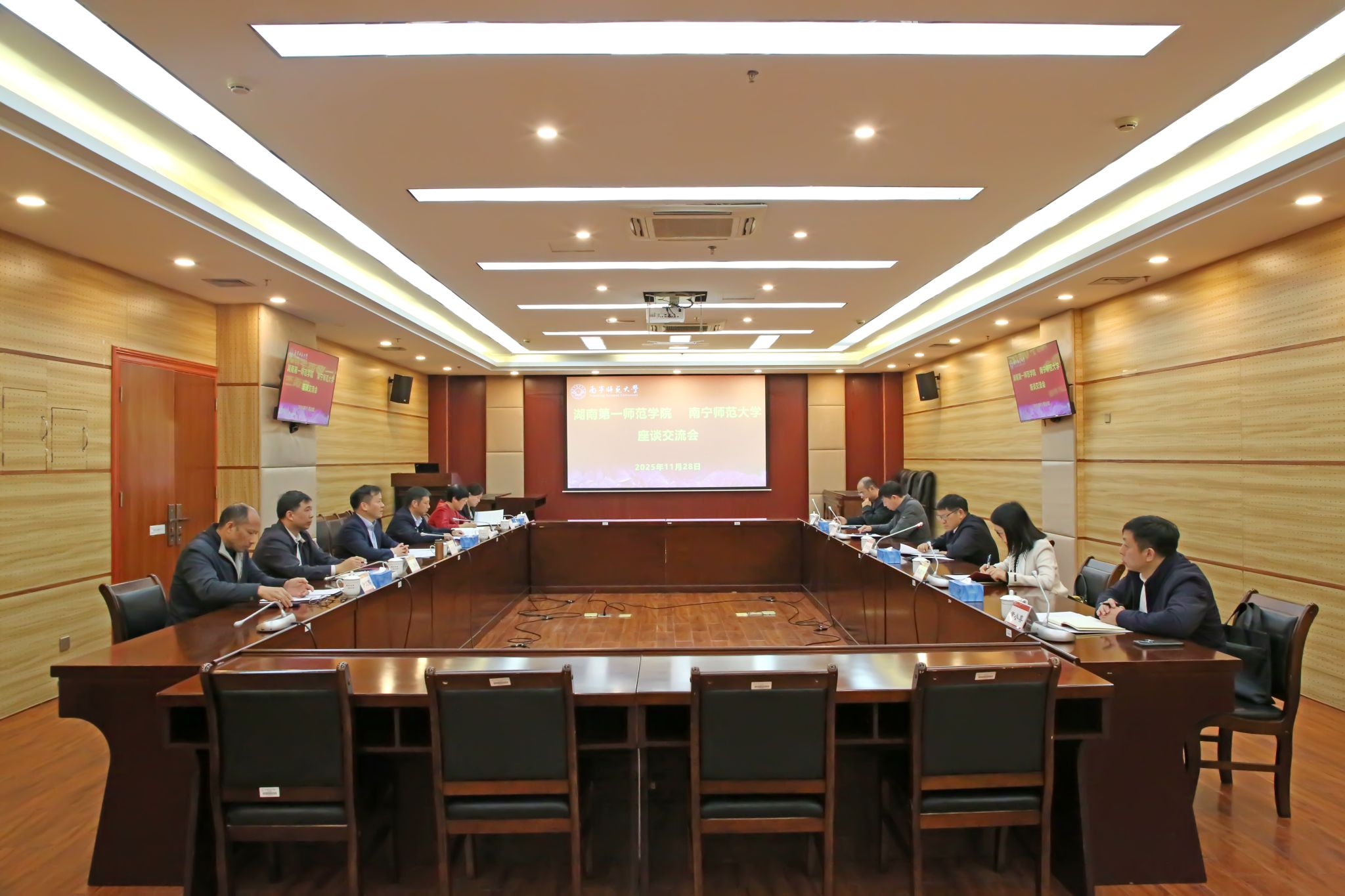 11月28日下午,湖南第一师范学院党委书记罗成翼一行5人到我校开展调研交流。我校副校长卢远、张松涛热情接待了罗成翼一行,并在明秀校区图书馆二楼会议室举行座谈交流会。