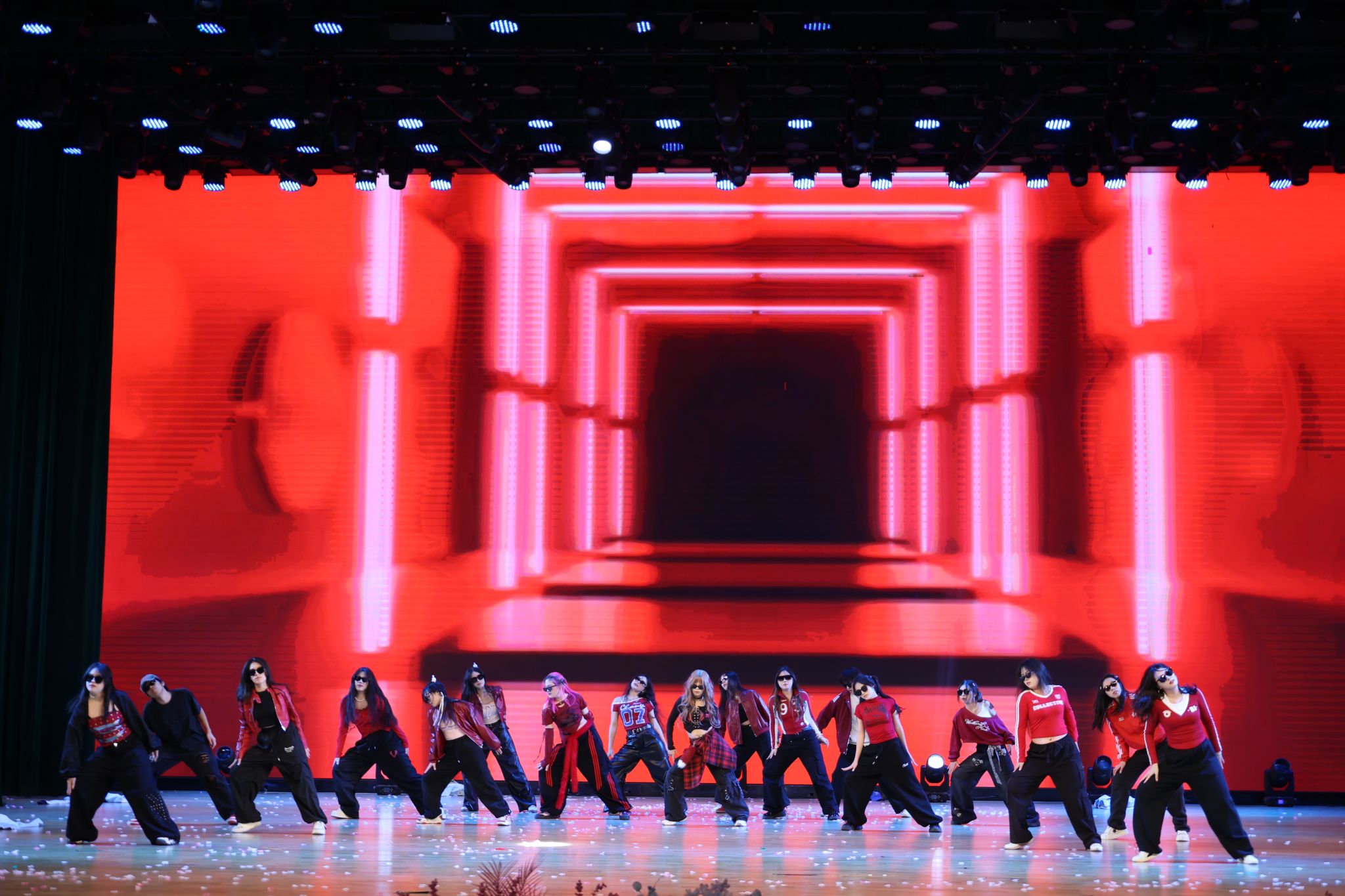 自青春舞大赛启动以来,便掀起校园“美的动员”热潮。从各学院层层遴选到参赛队伍反复打磨,青春激情在一次次排练中凝结,艺术灵感在一遍遍雕琢中闪光。比赛当晚,22支代表队如同22篇流动的乐章,以肢体为笔、音乐为墨,在聚光灯下勾勒出兼具东方意蕴与时代张力的动人画卷——街舞类刚劲如风,每一个转身、每一次跳跃都充满力量感,将青春的活力与张扬展现得淋漓尽致;啦啦操整齐划一,队员们手持彩球,伴随着欢快的音乐变换队形,笑容明媚灿烂,传递处积极向上的青春态度;中国舞柔美婉约,或手持绢扇,或挥舞水袖,将观众带入古色古香的诗意场景……整场比赛中,每一支队伍的编排都尽显匠心,每一个动作的设计都经过反复推敲,每一次腾跃都饱含着对舞蹈的热爱与对梦想的追求,为全场观众献上跨越感官、直抵心灵的青春礼赞。