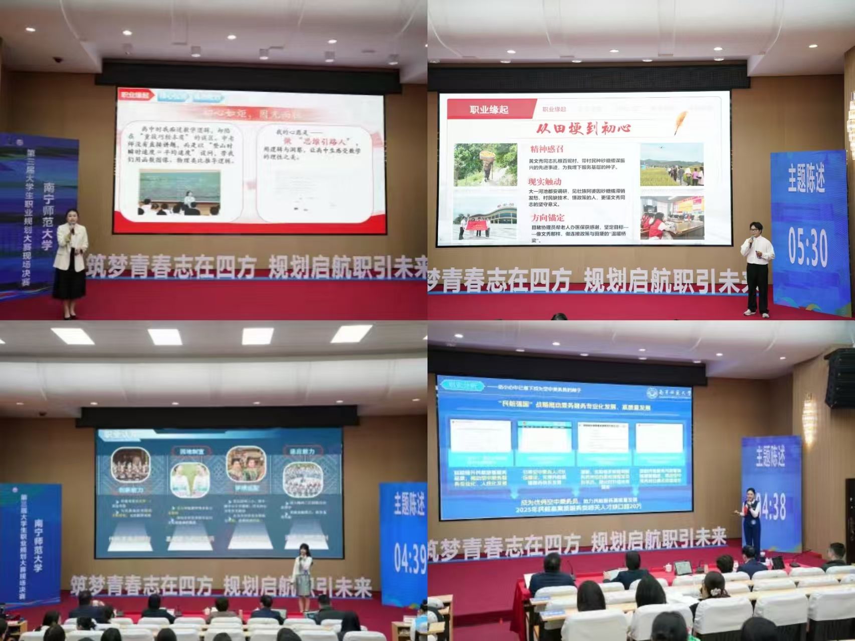 12月6日,我校第三届大学生职业规划大赛现场决赛在明秀校区文星楼301报告厅顺利举行。学校副校长龙妮娜出席颁奖仪式,党委学生工作部(处)等相关职能部门负责人,学院分管就业工作领导、决赛选手指导教师及200余名学生代表共同参与活动。