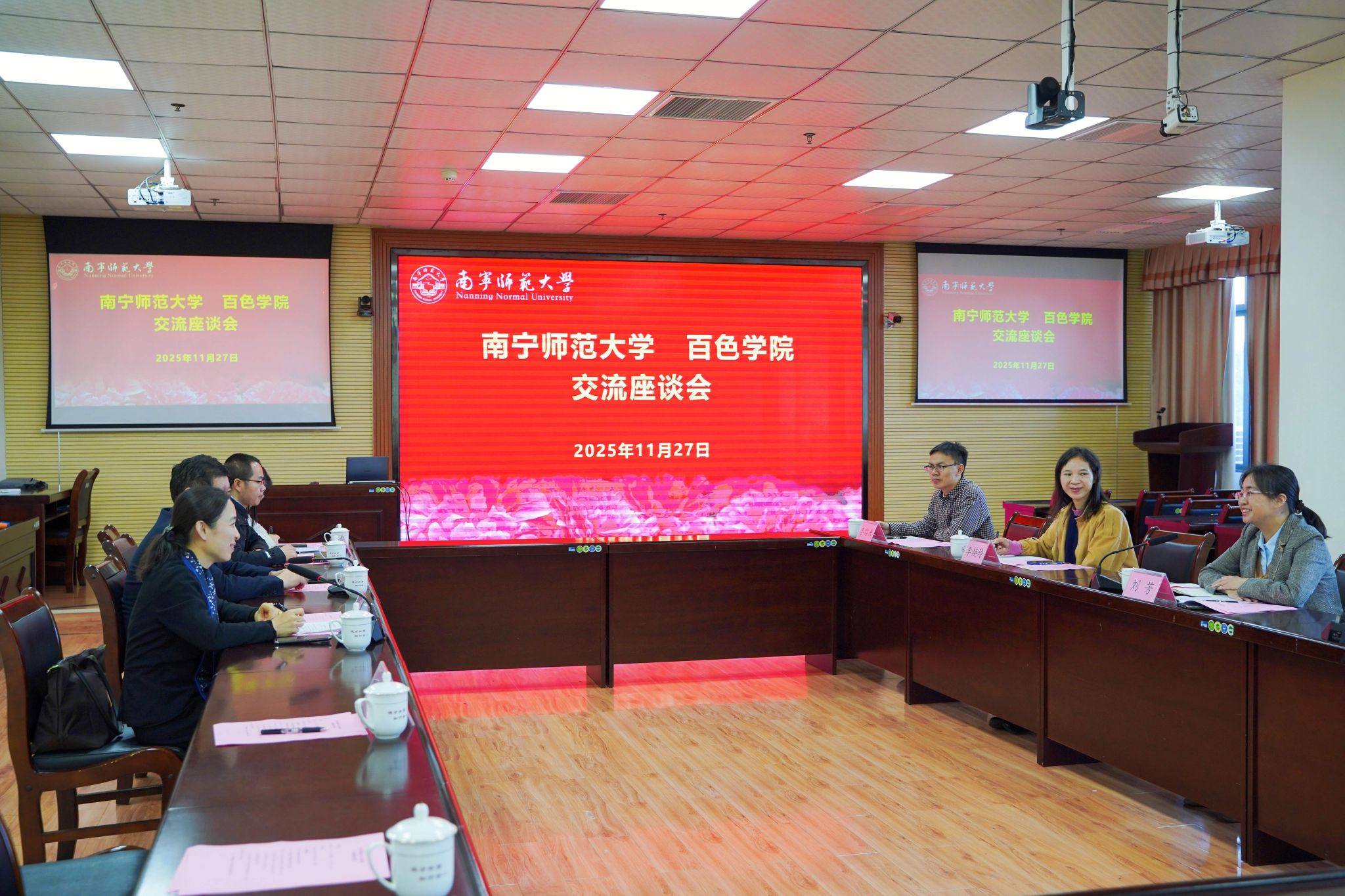 会上,唐荣双详细介绍了南宁师范大学的发展历程与办学成就,她表示百色学院在传承红色基因、开展革命传统教育方面具有独特优势,期待以此次交流为契机深化两校多领域合作。刘芳介绍了百色学院的办学历史与发展规划的相关情况,她表示南宁师范大学在思政教育融入课上课下、信息化技术应用等方面的经验值得深入学习,此次到访旨在取经交流,推动本校思政工作高质量发展。