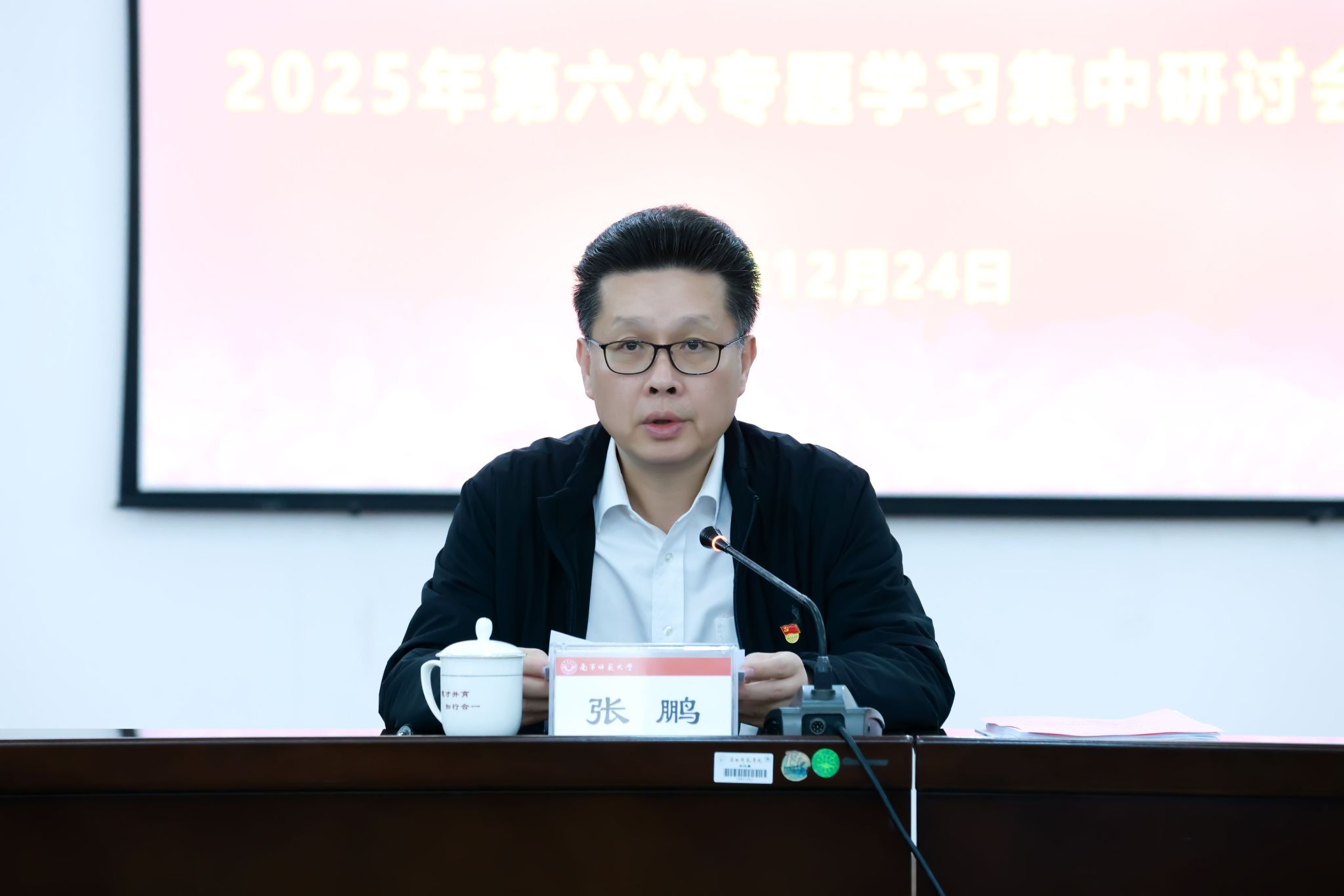 12月24日下午,学校党委理论学习中心组2025年第六次专题学习集中研讨会在明秀校区鸿远楼409会议室举行。学校党委书记张鹏主持会议。