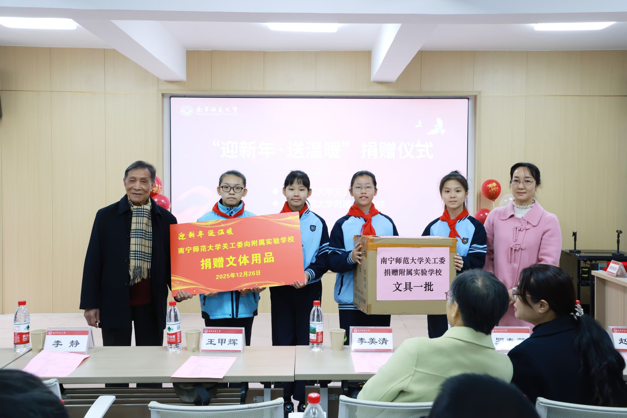 学校关工委常务副主任王甲辉向附属实验学校捐赠文体用品,传递学校对青少年的深切关怀。离退休党委与人工智能学院、物理与电子学院、初等教育学院党委共同签署《党建联建协议》,标志着“银青互动”平台正式落地。