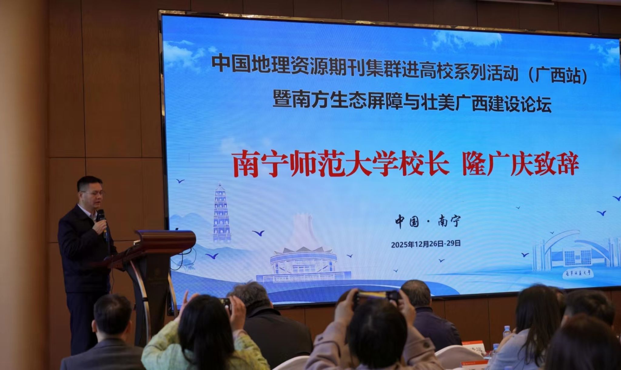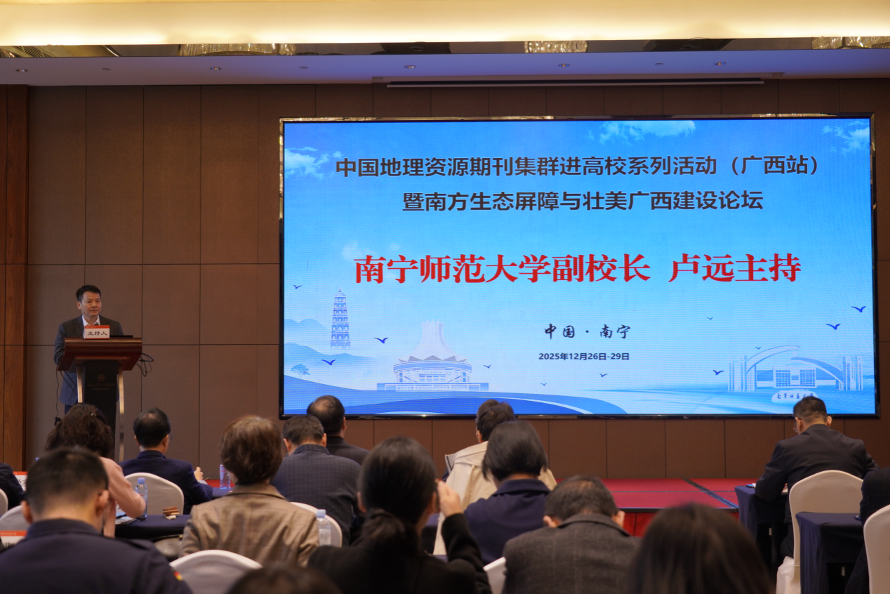 12月26日—29日,中国地理资源期刊集群进高校系列活动(广西站)暨南方生态屏障与壮美广西建设论坛在我校举办。此次论坛由中国地理学会编辑出版工作委员会、中国地理资源期刊集群建设工作组主办,北部湾环境演变与资源利用教育部重点实验室、南宁师范大学地理科学与规划学院联合承办。